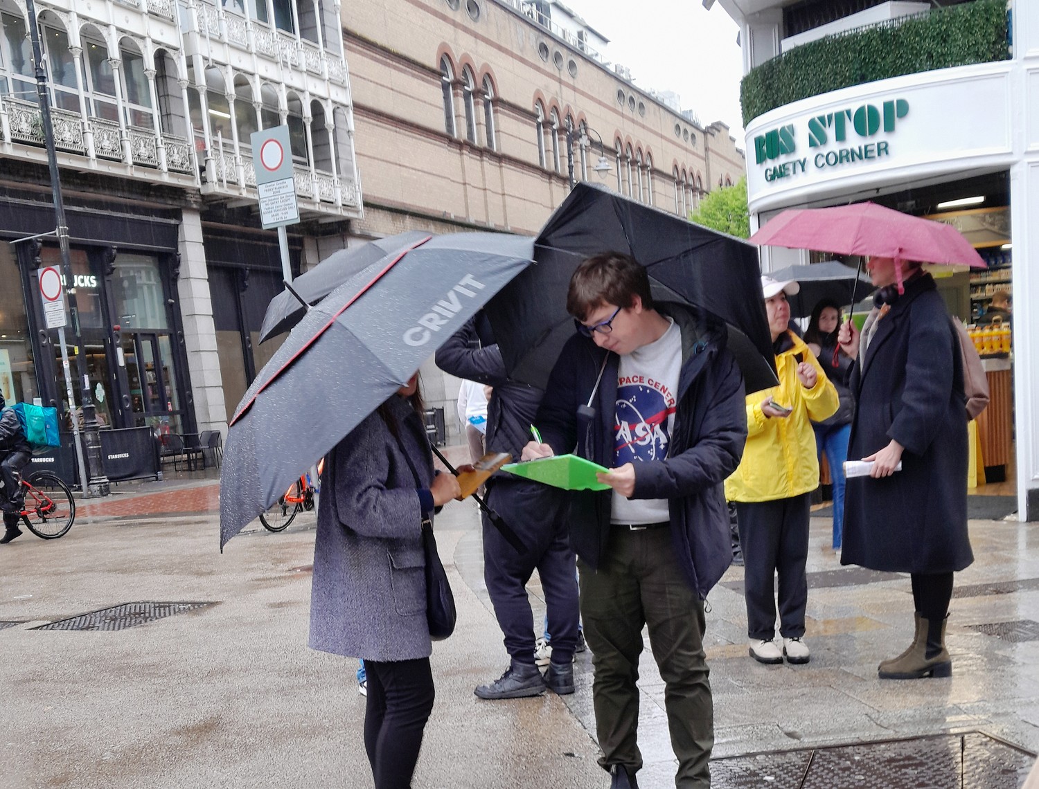 ![]() 图6~8:爱尔兰民众了解真相后,冒雨签名支持法轮功学员反迫害。 |