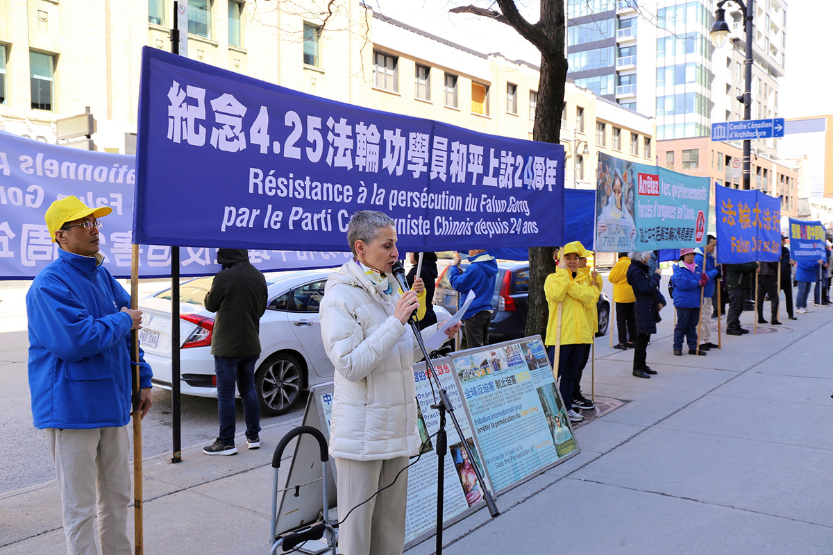 ![]() 图3:四月二十五日,蒙特利尔部份法轮功学员在中领馆前纪念4.25和平上访24周年,并要求中共停止迫害。图为法轮功学员代表发言。 |