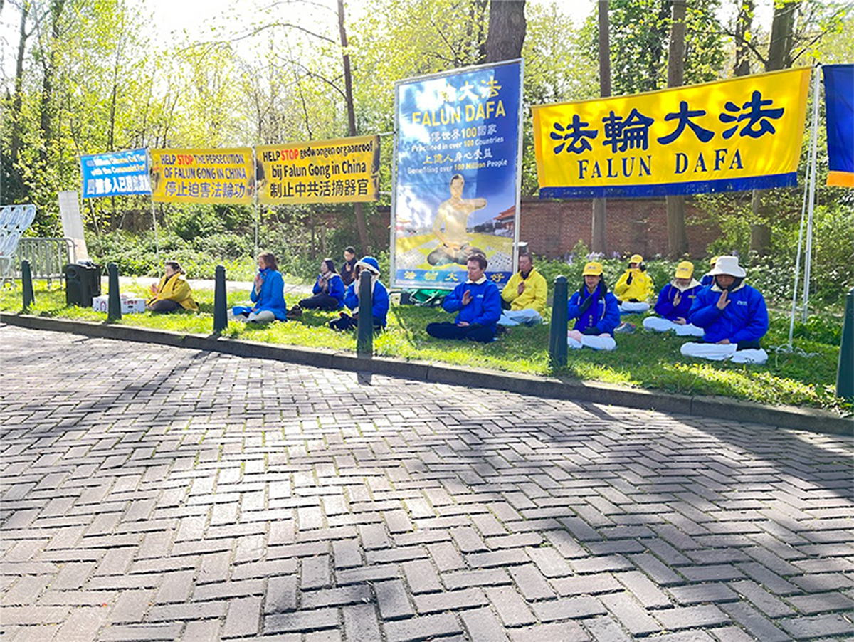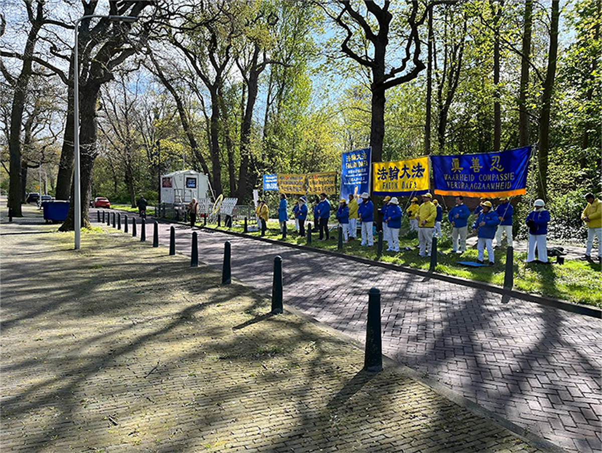 ![]() 图1:二零二三年四月二十五日上午,海牙法轮功学员在中共驻荷兰大使馆外,纪念“四·二五”。 |