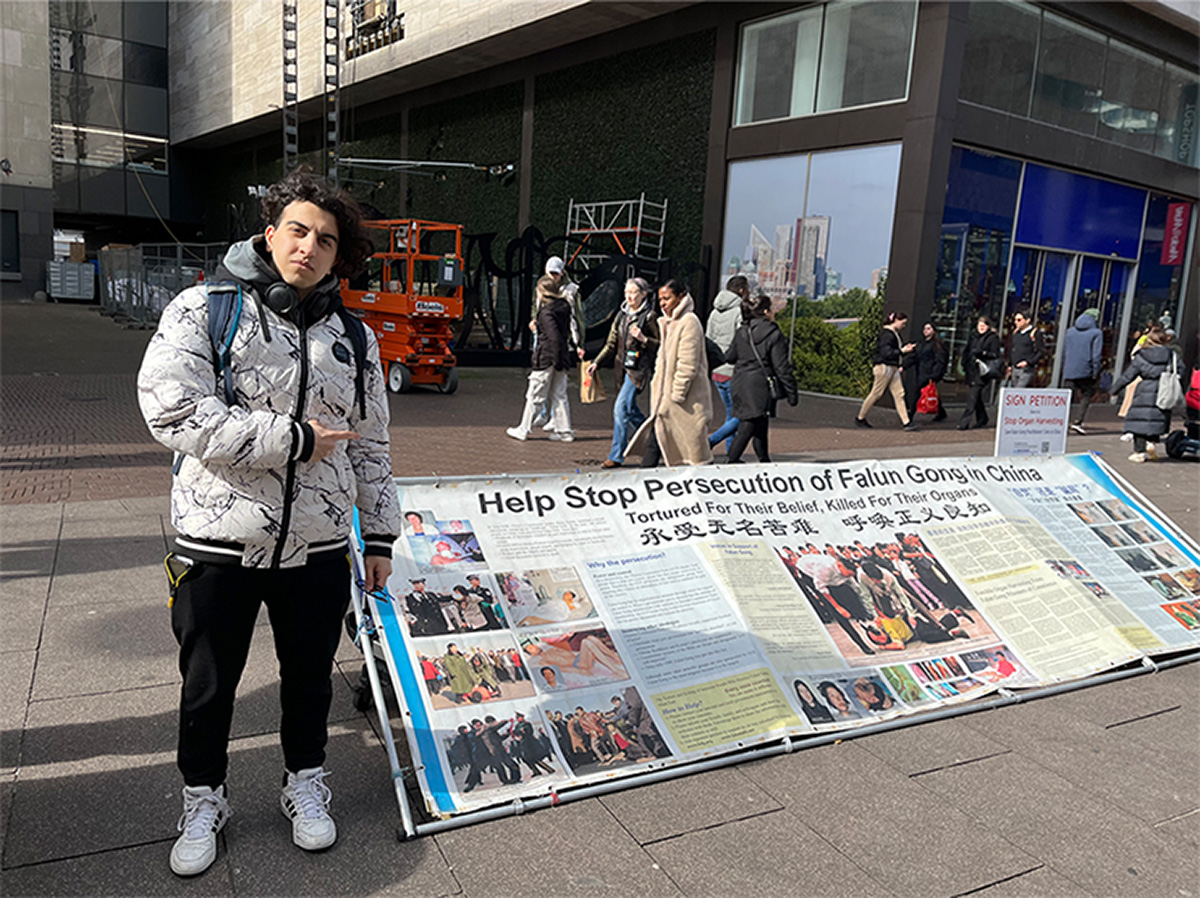 软件开发专业学生雷扎· 卡扎伊(Reza Khazaei)也停下来了解更多有关功法和迫害的信息。他说:“我认为法轮功传递了一个很好的信息。而且我还认为应该有更多的人修炼,不幸的是,在中国不允许修炼,而在全世界都可以炼,因为这一功法实际上是非常和平的,非常平静”,他说:“我认为中国镇压这一功法,这有点可耻,但需要更多地传播。新闻也应该报道,信息(渠道)也应该传播这场迫害的消息。”