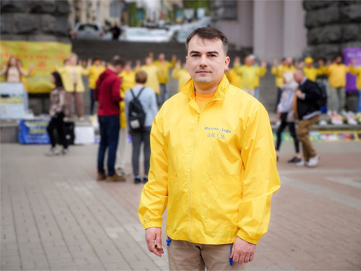 丹尼斯修炼法轮大法已有二十年。 他说,呼吁停止在中国的迫害对他来说是良心问题,他还补充说,法轮大法帮助他在俄乌战争开始时保持冷静。“对我来说,法轮大法是一种在社会中、在世界上和谐存在的方式,知道自己是宇宙的一部分。这对我特别有帮助,尤其是在乌克兰战争爆发时,因为很难让自己恢复正常。对于我们,对于乌克兰人来说,这是面对恐惧和损失的巨大考验。但是在打坐时,我意识到宇宙最终会归正一切。”丹尼斯说。