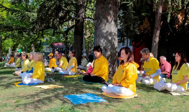 ![]() 图1~4:纪念四·二五,西班牙法轮功学员大使馆前集会,呼吁停止迫害 |