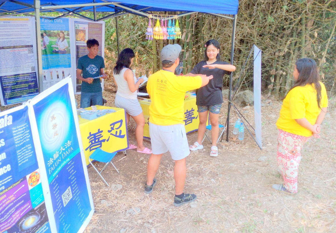 一位刚从加拿大来到奥斯汀的游客被优美舒缓的功法所吸引,她表示,以前看过法轮功的功法展示,这次在奥斯汀看见这么多法轮功学员在集体炼功,希望也能试试。当得到法轮功学员的同意后,她走进炼功队伍中,学习了第二套功法,表示感到能量场非常好。