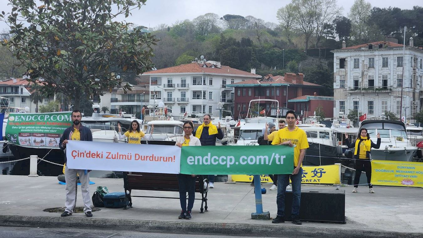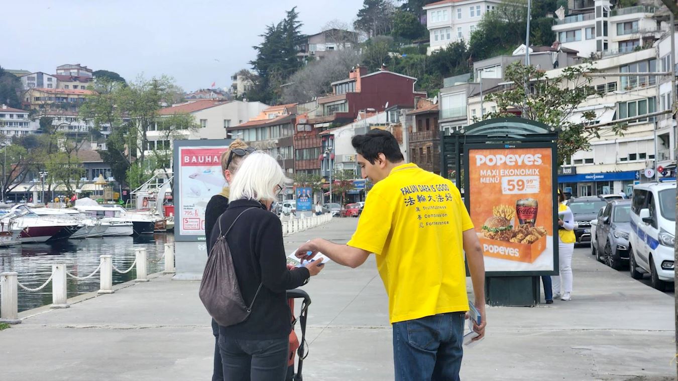 ![]() 图1:二零二三年四月十七日星期一,部分土耳其伊斯坦布尔的法轮功学员们,在中国领事馆前举行了抗议活动 |