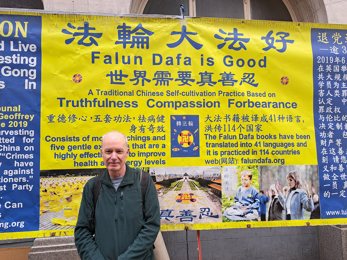 来自美国的马克·艾利森(Mark Allison)是一位飞机技术人员,和他的妻子观看了四月十五日神韵在伦敦阿波罗第二场的演出。隔天经过唐人街真相点,发现大法真相横幅就是他们昨天在神韵节目中看到的,于是停下来签下了支持反迫害的声明。