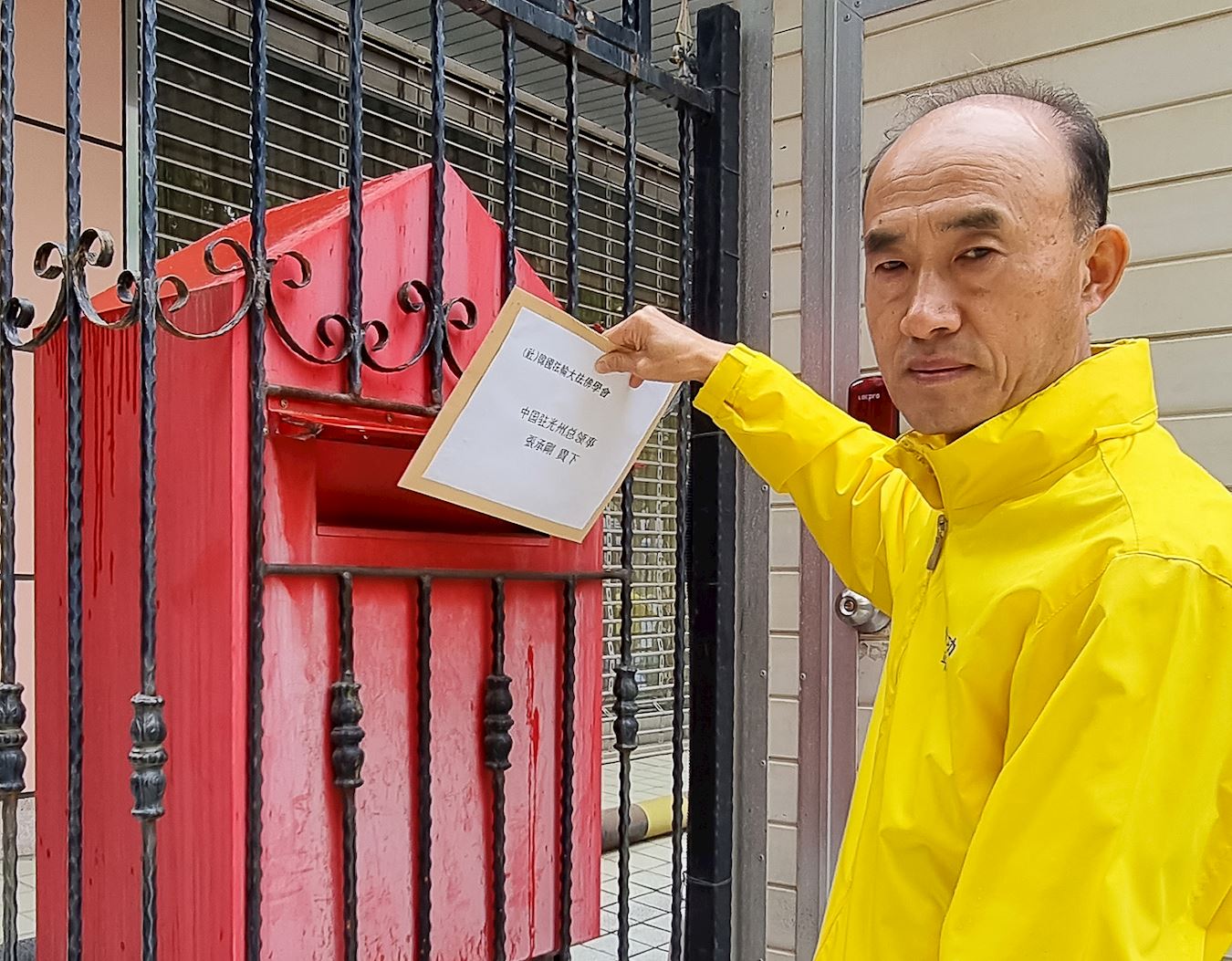 当天在同一时间,在光州和釜山也举行了同样的活动。光州湖南地区的法轮功学员在中国驻光州总领事馆前用韩文和中文宣读法轮功简介和声明书,然后将声明书投递到领事馆邮箱。