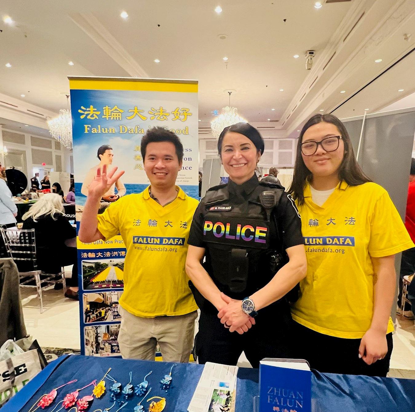 ![]() 图1:约克区警察来到展位,表示支持法轮功学员坚守真、善、忍的价值,和平抵制中共的迫害。 |