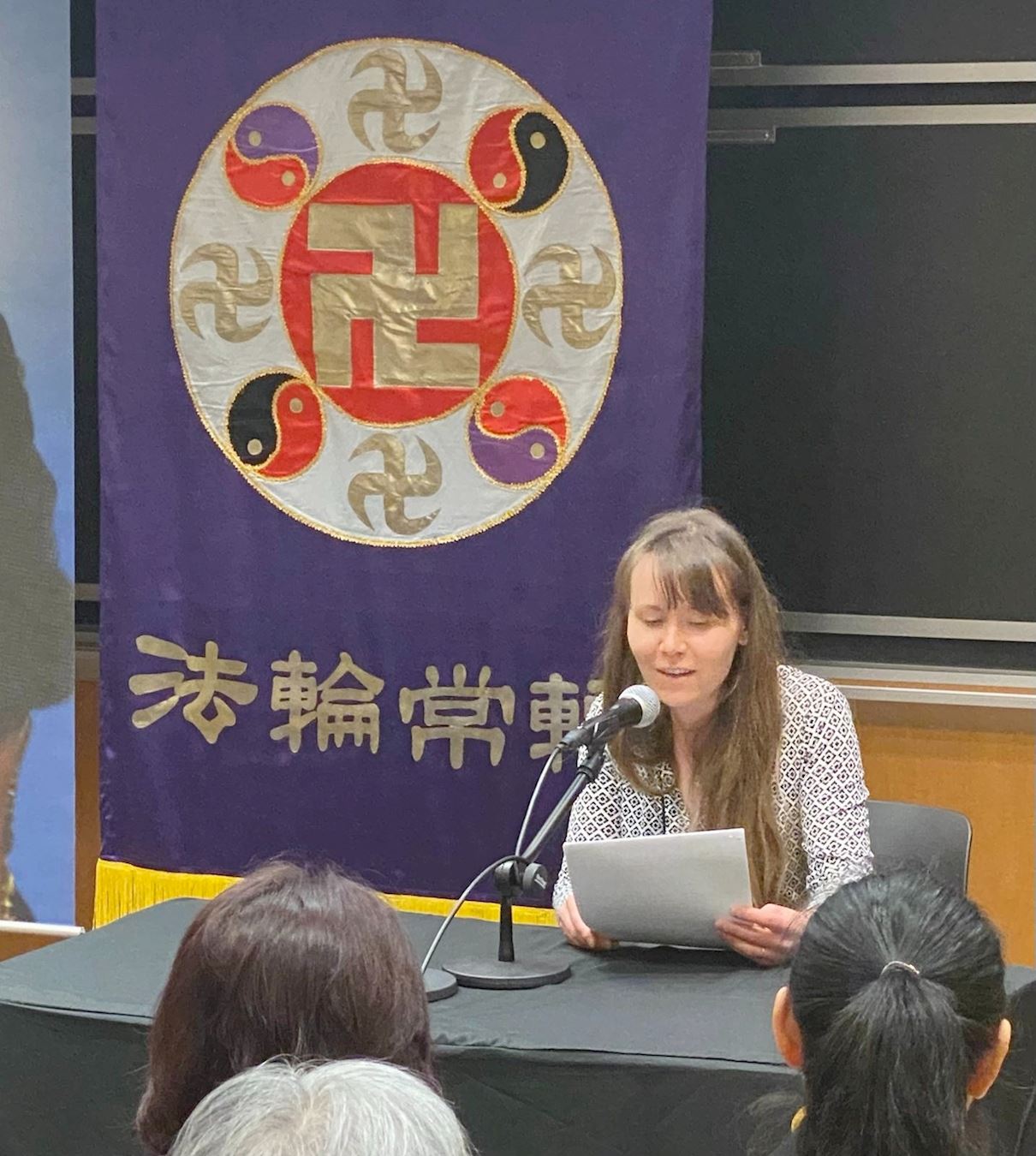 西人学员阿德尔(Adel)当年在伦敦街头接到一份中共活摘(法轮功学员)器官的传单,从此知道了法轮大法。随着身边亲人陆续开始修炼,并且在大法中获益,她也下定决心走入修炼。当时,她有严重的产后并发症,而且诊断不出病因。所有的医生和专家都断言她不可能再有孩子。随着她在大法中精進,实实在在的提高心性,她的身体完全康复,并且迎来了小女儿的降生。