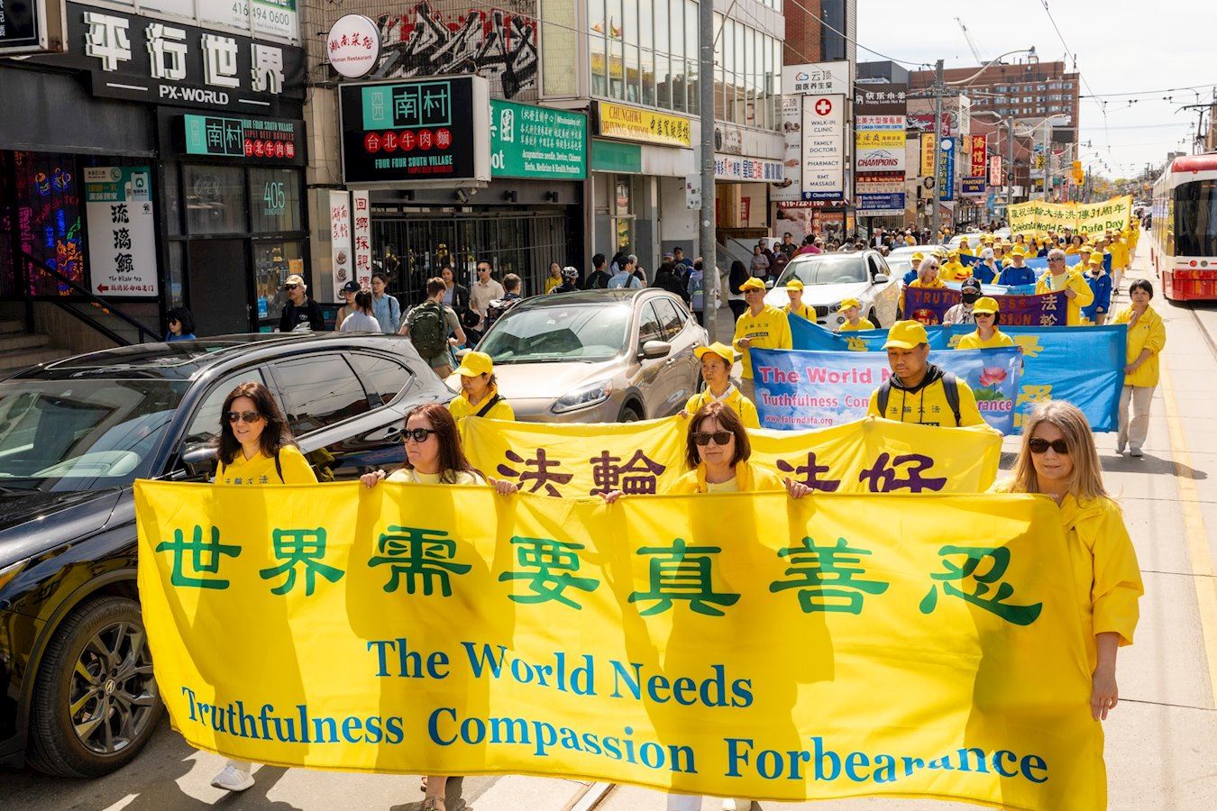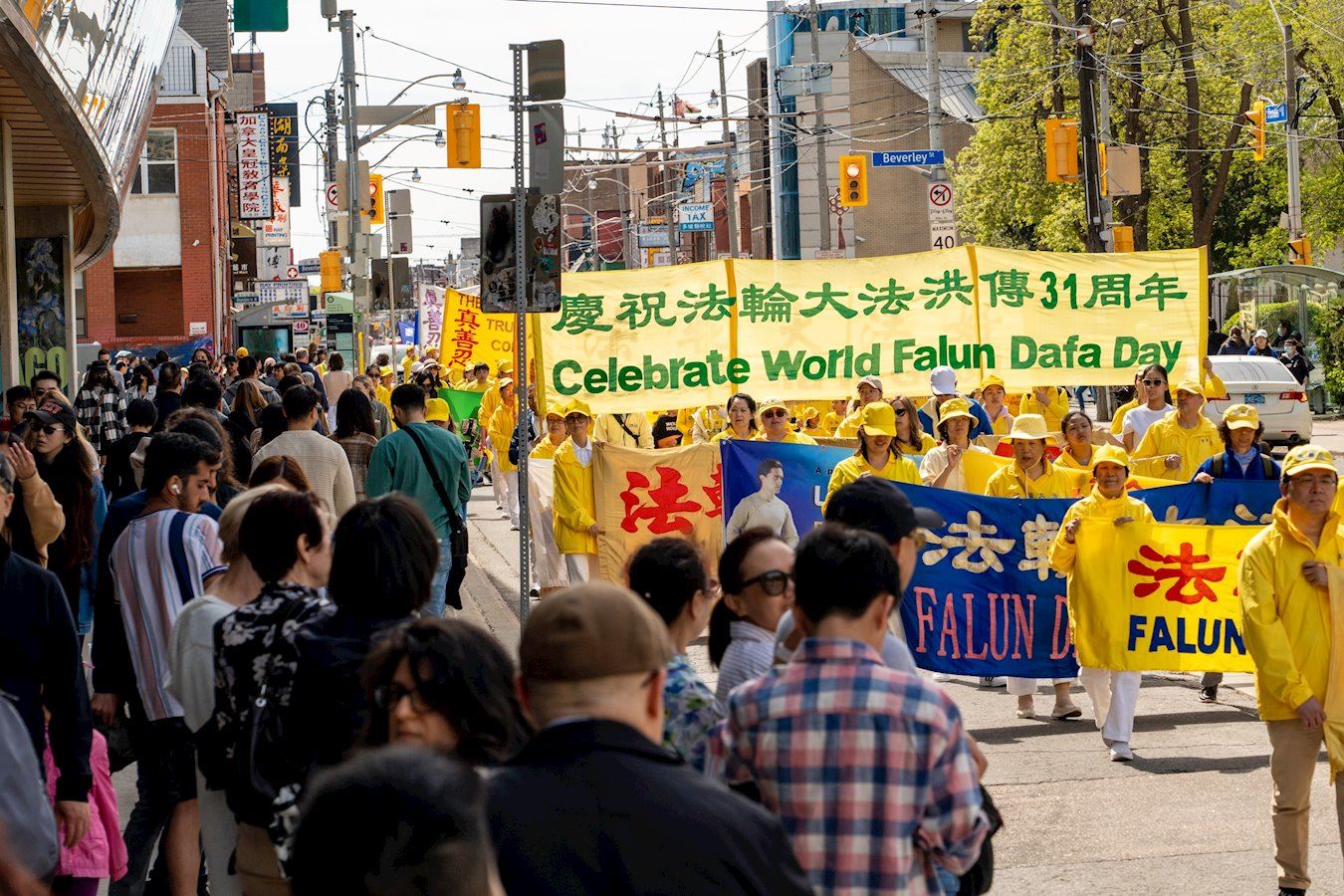 ![]() 图1~13:二零二三年五月六日下午两点,多伦多法轮功学员举行了庆祝法轮大法弘传世界三十一周年的大游行。队伍穿过唐人街和市中心,受到沿途观众的喜爱。 |
