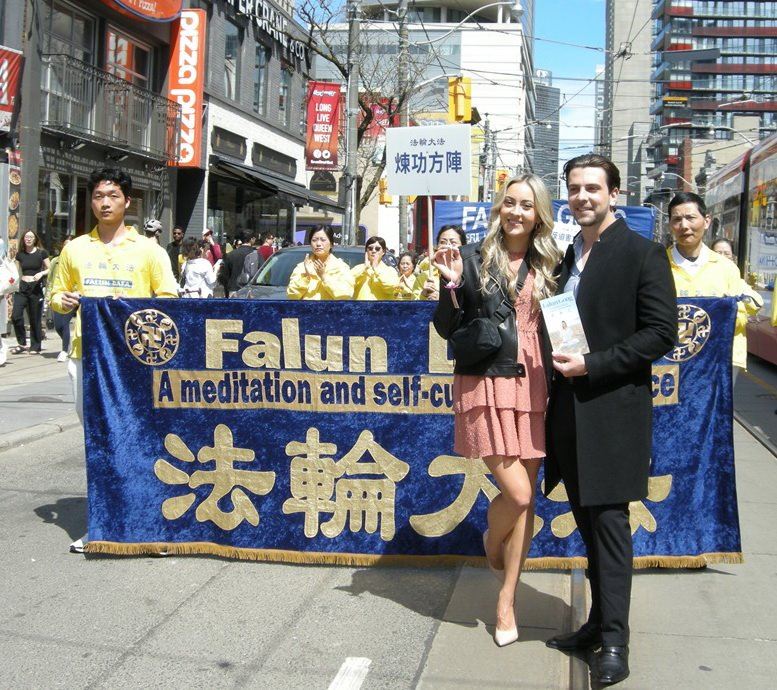 ![]() 图20:安吉拉·塔兰(Angela Taran)是多伦多一家房地产公司的地产经纪,当天和男朋友丹尼斯(Dennis)观看了游行。 她表示非常喜欢法轮功学员给观众带来的精彩表演。 |