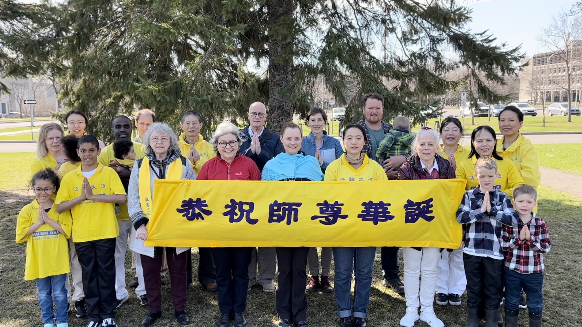 ![]() 图3:魁北克城部分法轮功学员向师父表达感恩,恭祝师尊生日快乐。 |