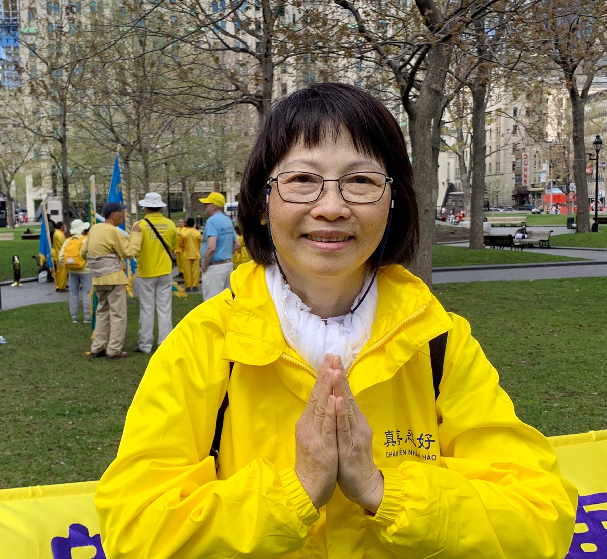 修炼后,金从以前依赖药物的治疗疾病中康复——骨质疏松症、甲状腺癌、胆固醇高等消失,完全不需要吃药了。她按照真、善、忍的标准,改掉易怒的脾气,每天乐呵呵地在唐人街真相点向过往民众讲真相。
