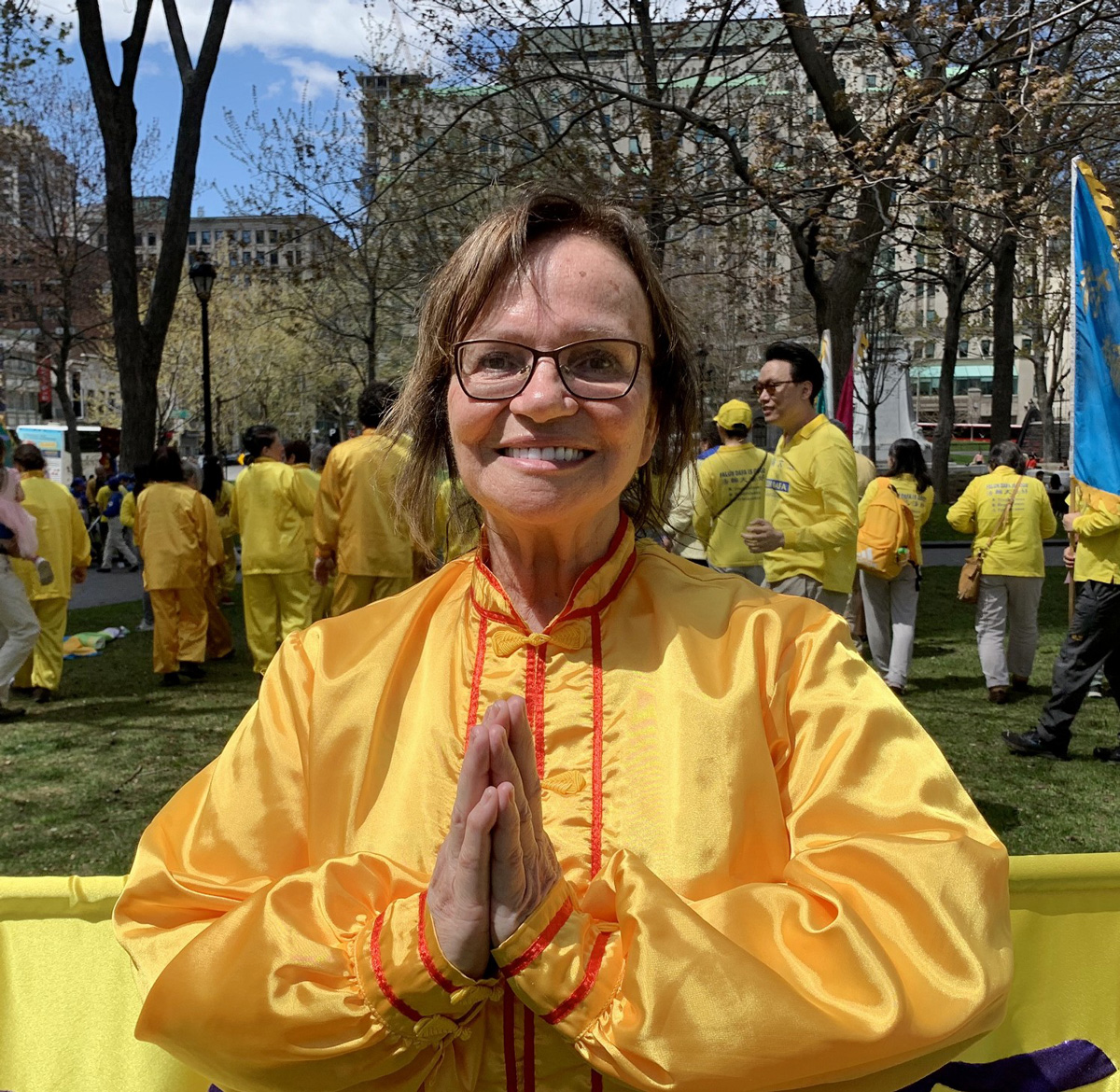 回加拿大后,她在魁北克城的街头收到一张传单。当时她正在读一本关于灵性的书,心里很想有一位师父。她一看这张传单正是之前在澳洲学过的法轮功。她第一次拜读《转法轮》,就被吸引住,尽管书中一些中国文化的词语她看不懂。读到有关修炼人不能喝酒的部分时,她去参加蒙特利尔的一场派对,却再也没有喝酒的念头。