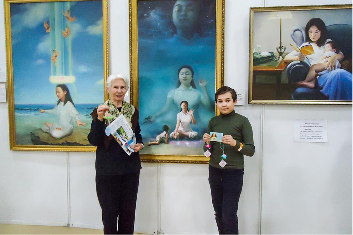 今年的艺术展专注于十九世纪俄罗斯著名艺术家尼古拉斯·罗里奇的精神之路和作品,因此吸引了很多在作品中探索精神主题的参展商。法轮功学员从“真善忍美展”作品中挑选了五幅画作,带来参展,与公众分享。