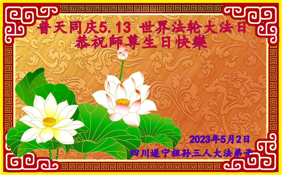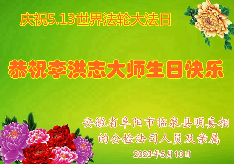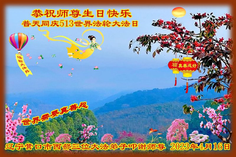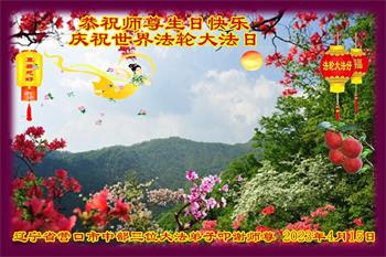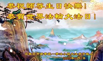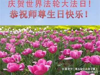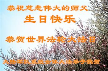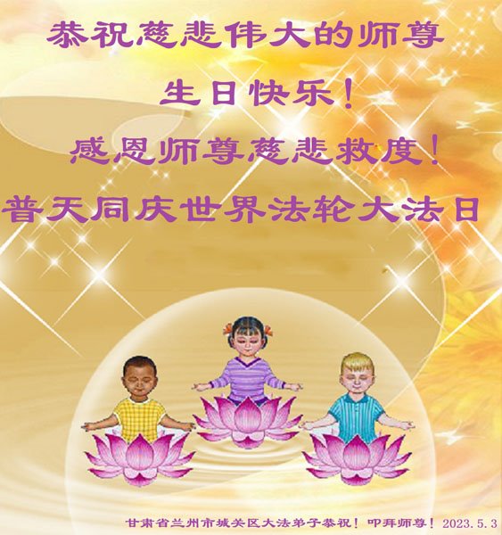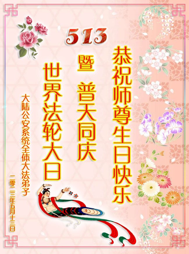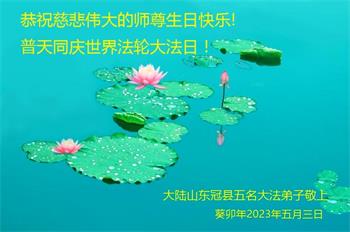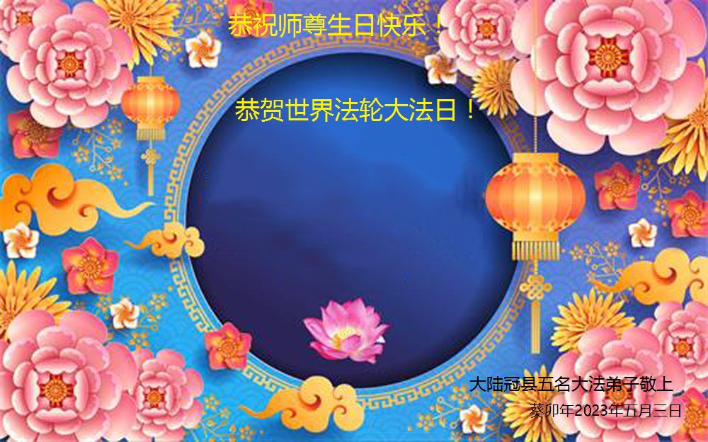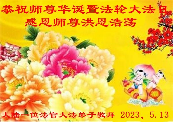 【明慧网二零二三年五月十一日】(明慧网通讯员综合报道)在中国大陆公安、检察院、法院、司法系统,及军队、军队院校、武警系统工作的大法弟子们恭贺李洪志师尊七十二岁华诞!在中共持续多年的迫害中,逐渐明白大法真相,或走入大法修炼中的中国执法系统工作人员同庆第二十四届世界法轮大法日!恭贺师父传法三十一周年!