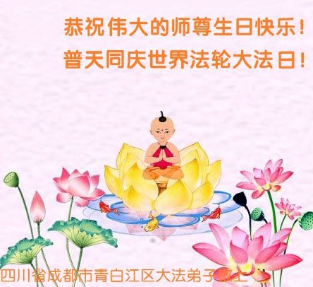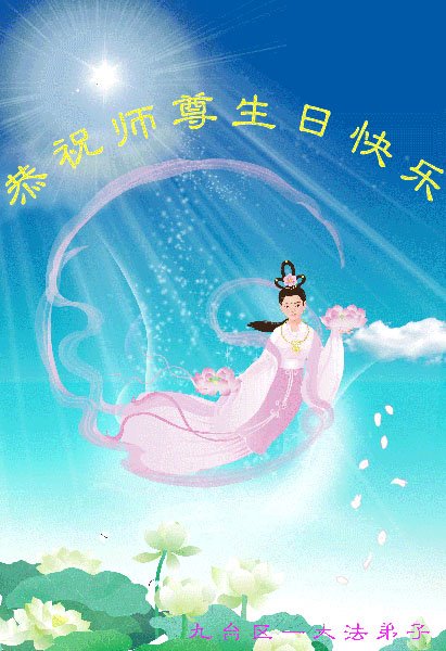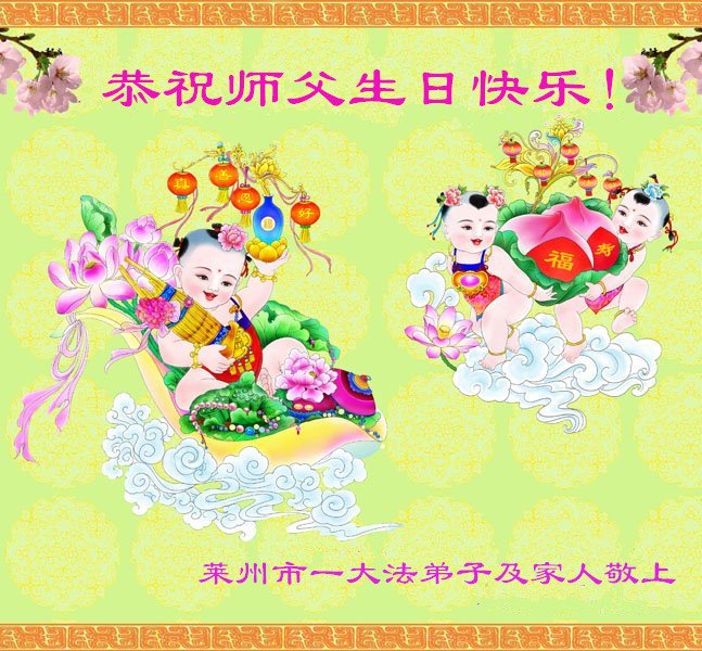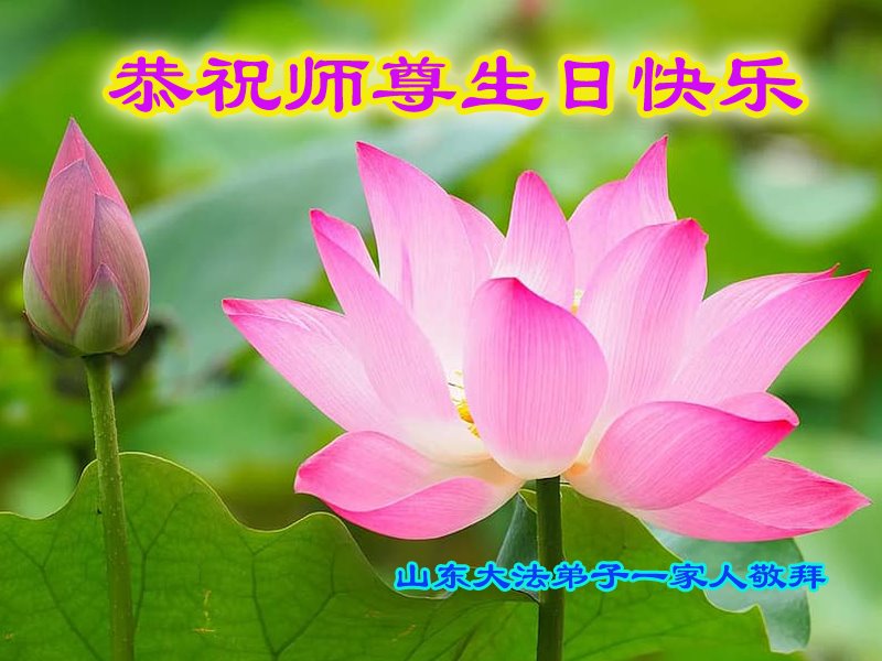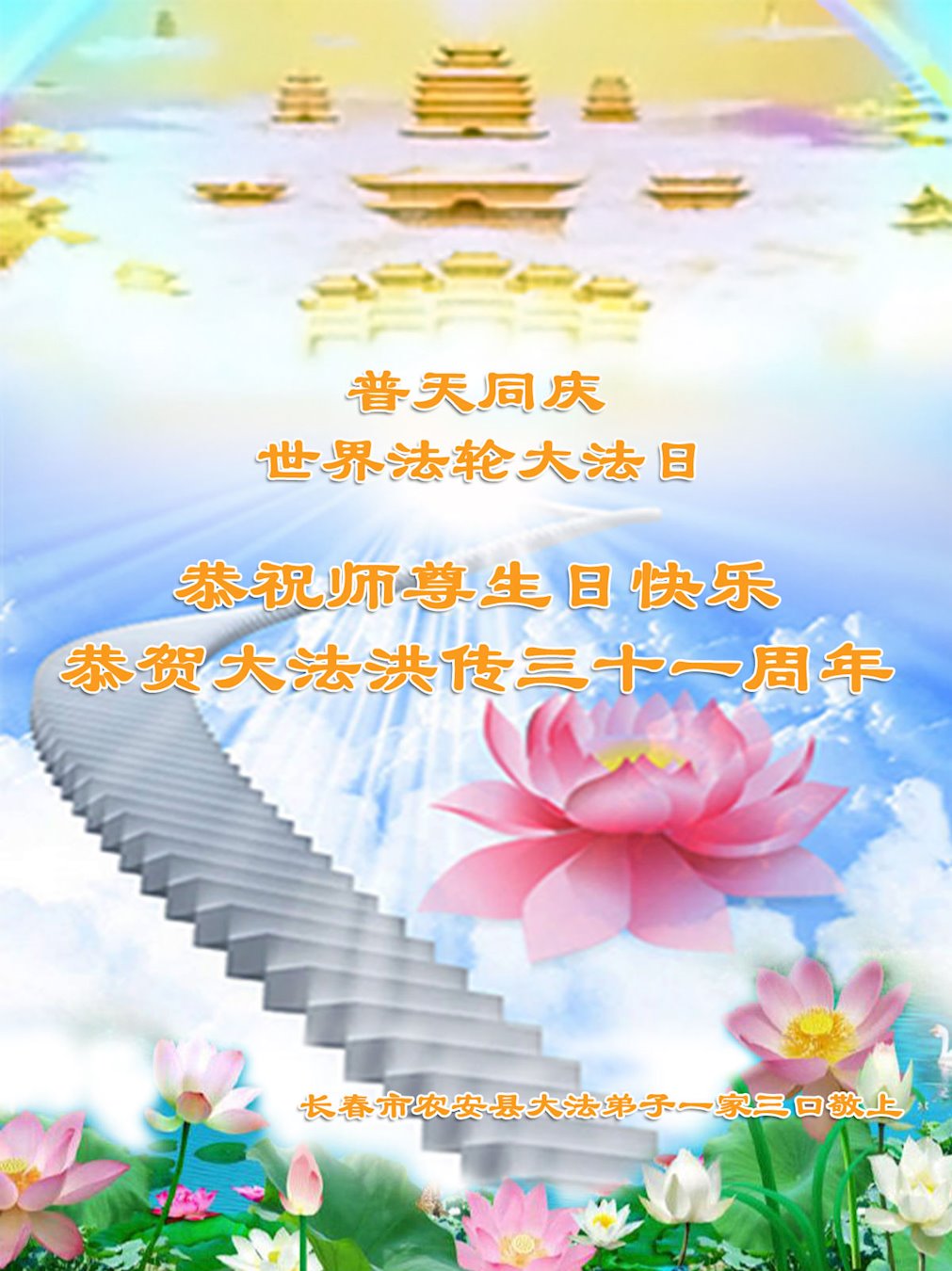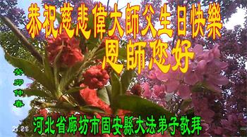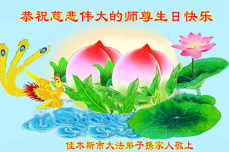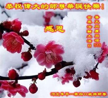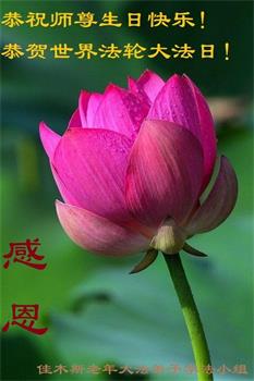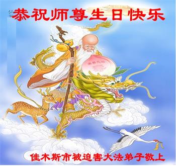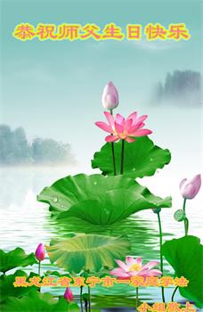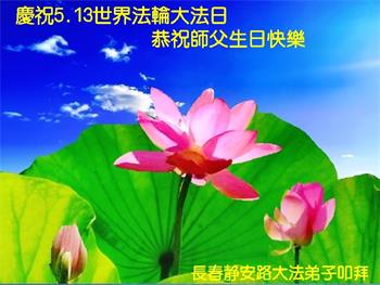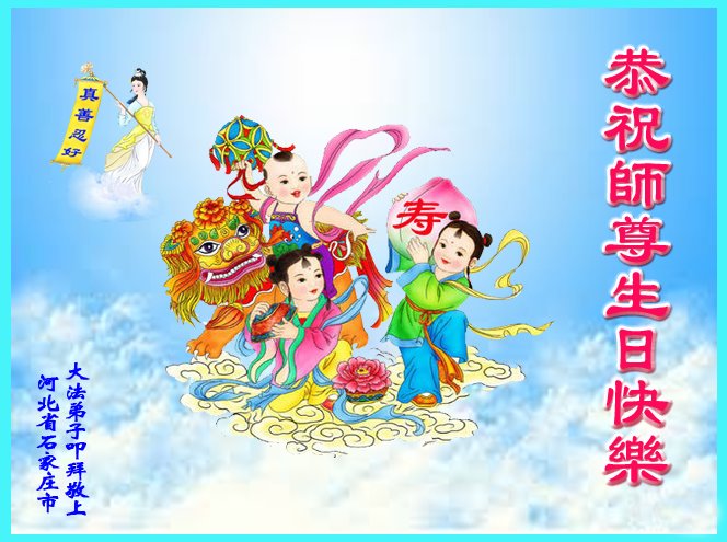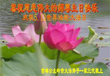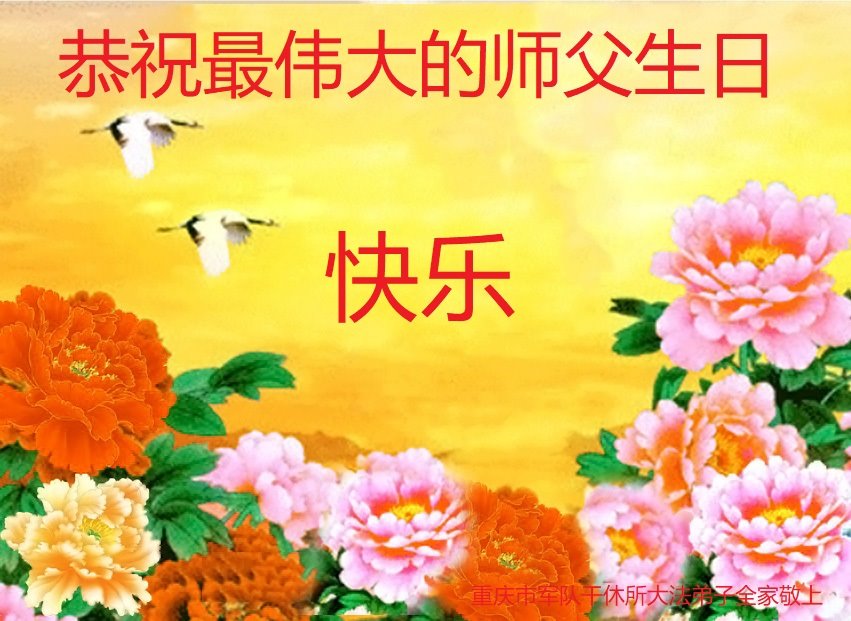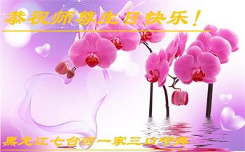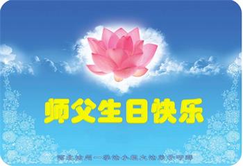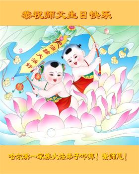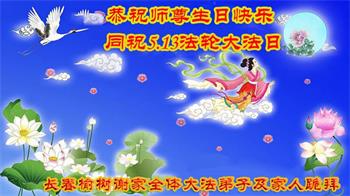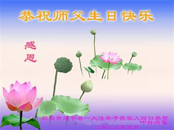 感谢李大师一直在看护着我们全家及所有的世人!使我们全家平安的度过了这乱世的年头。在此我作为一名大法弟子家属衷心的恭祝李大师生日快乐!