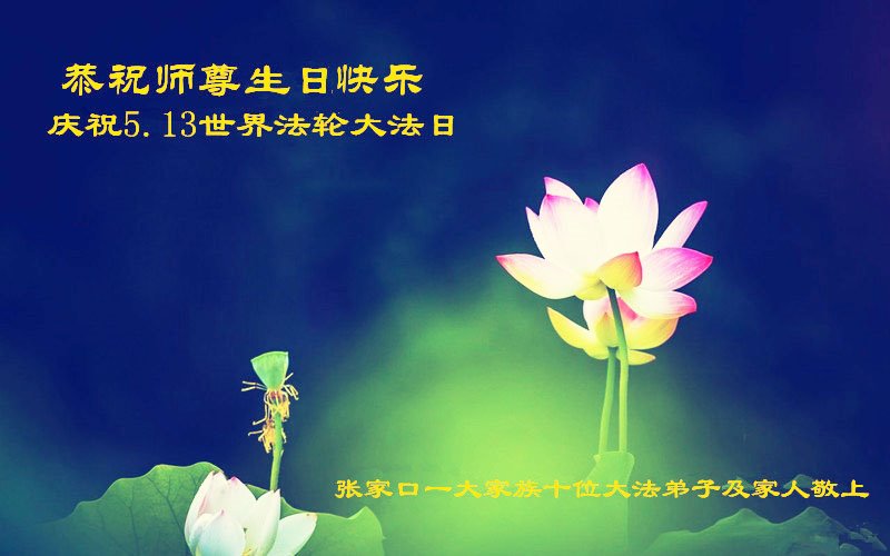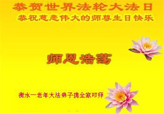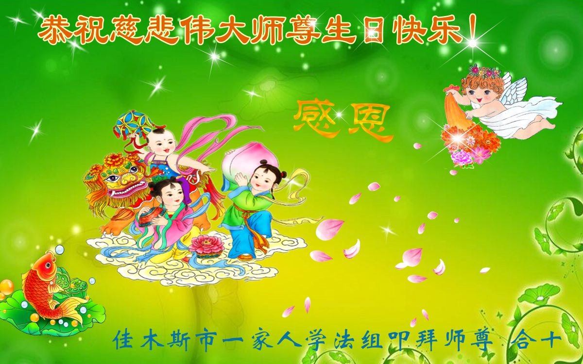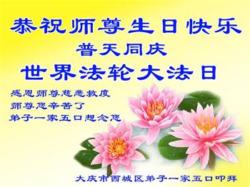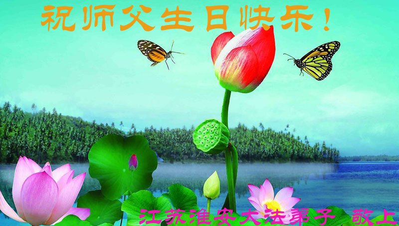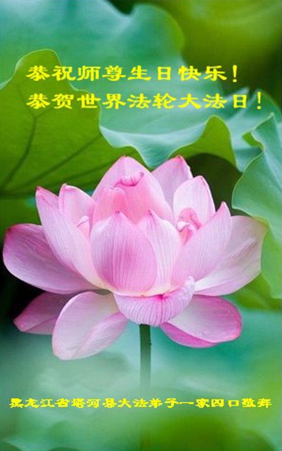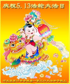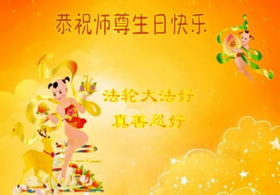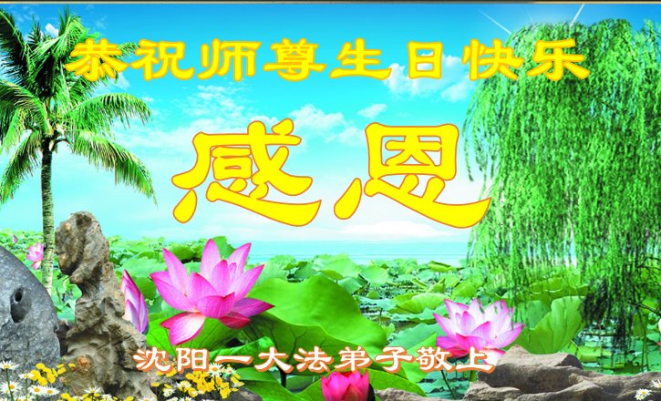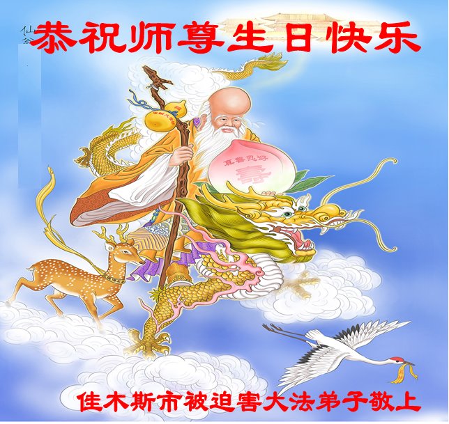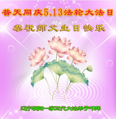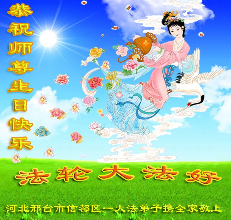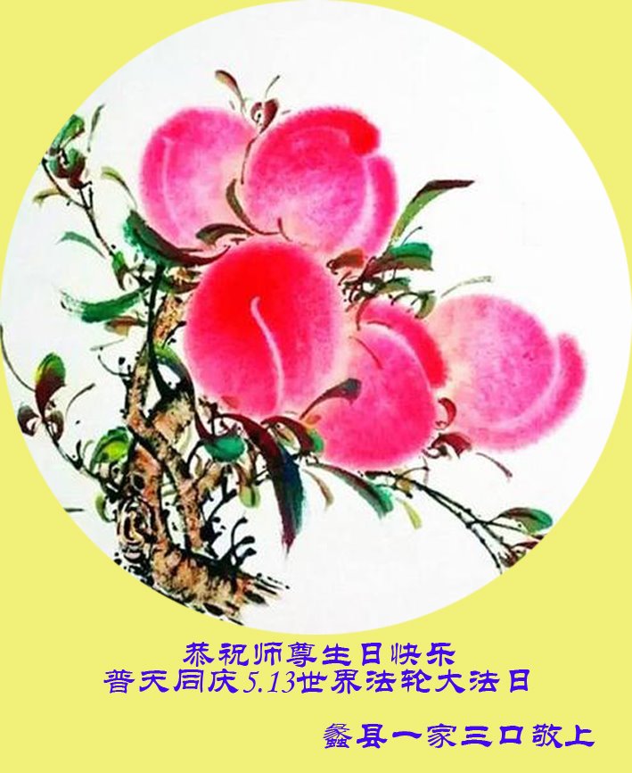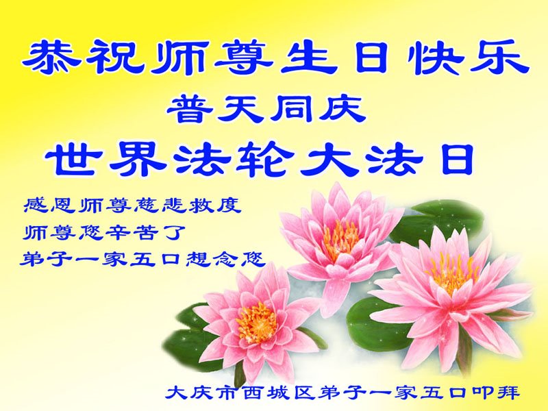 感谢李大师一直在看护着我们全家及所有的世人!使我们全家平安的度过了这乱世的年头。在此我作为一名大法弟子家属衷心的恭祝李大师生日快乐!