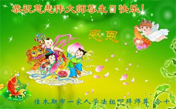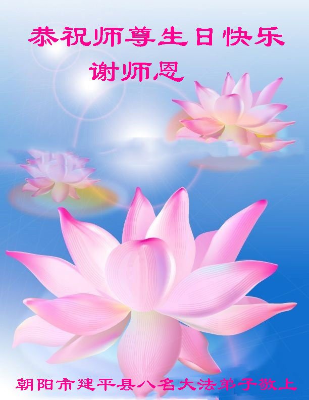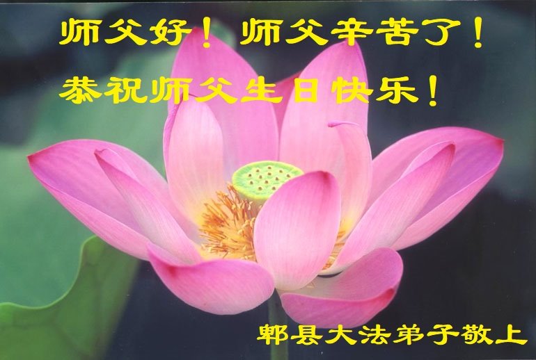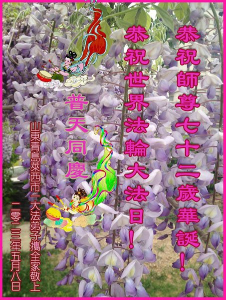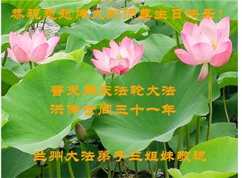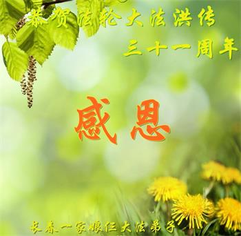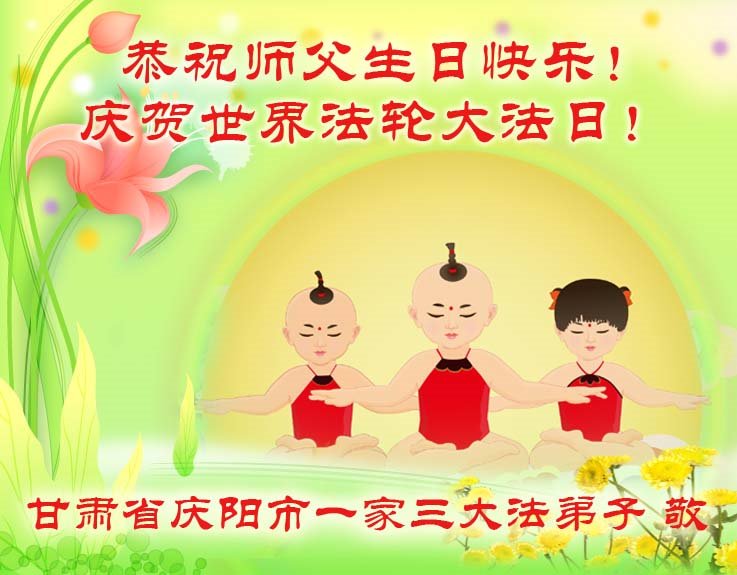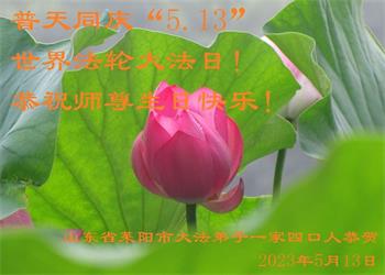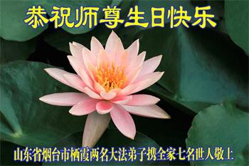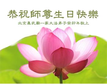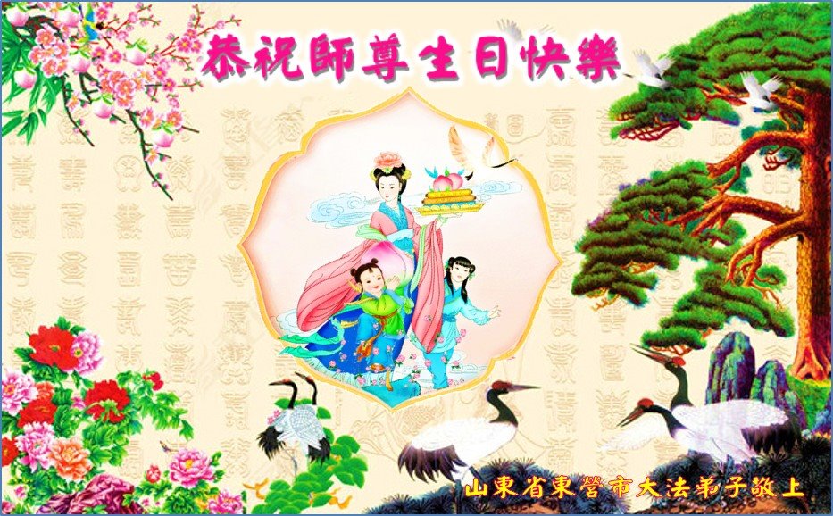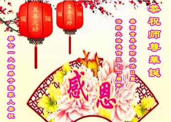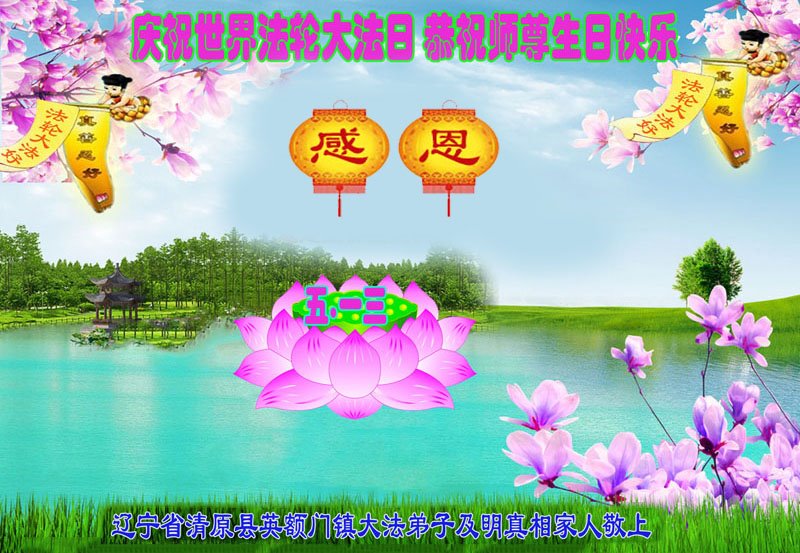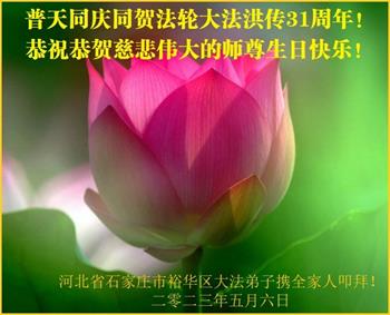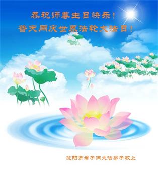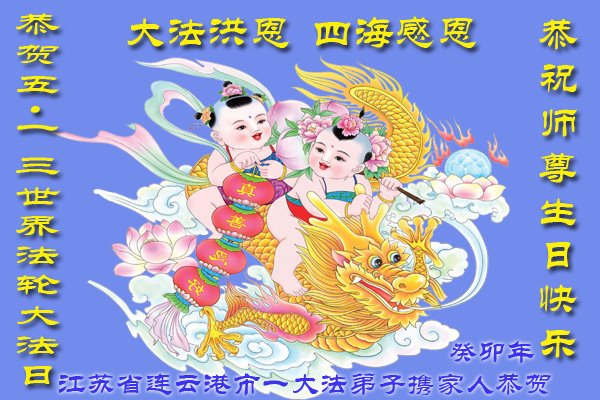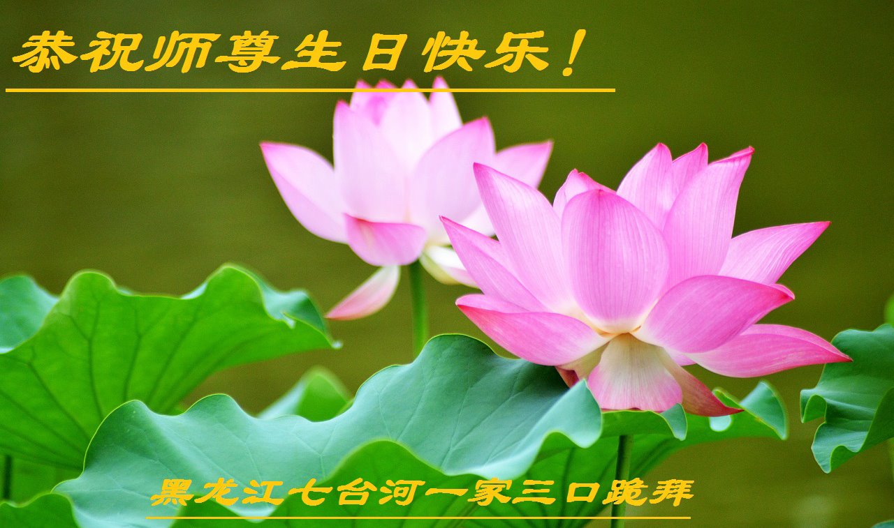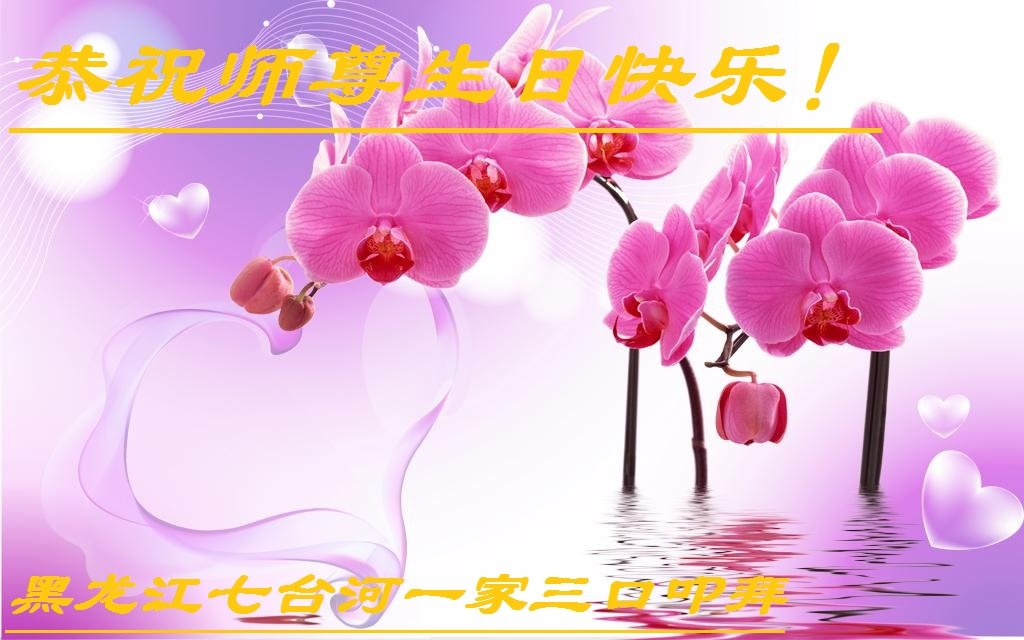 感谢李大师一直在看护着我们全家及所有的世人!使我们全家平安的度过了这乱世的年头。在此我作为一名大法弟子家属衷心的恭祝李大师生日快乐!