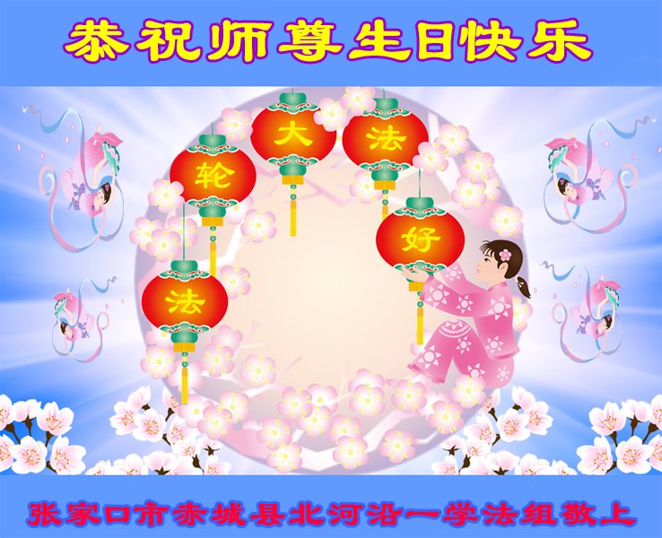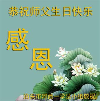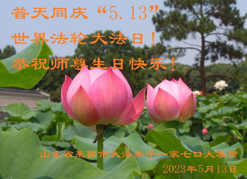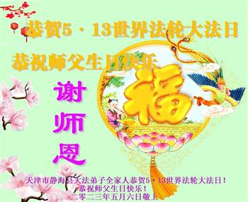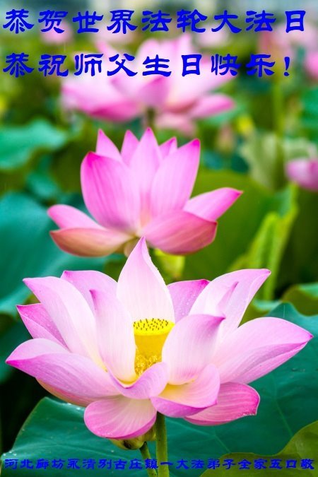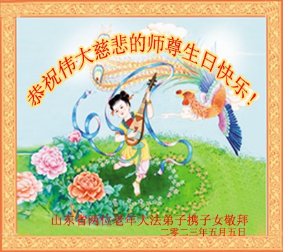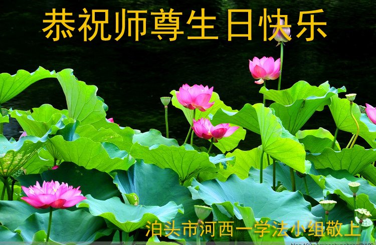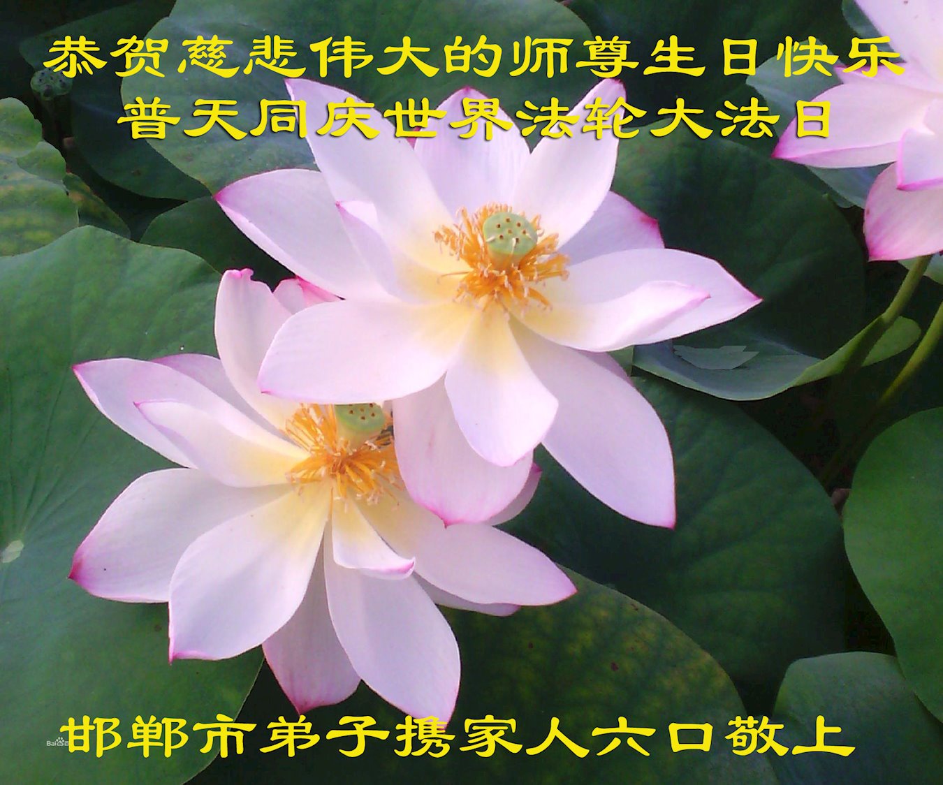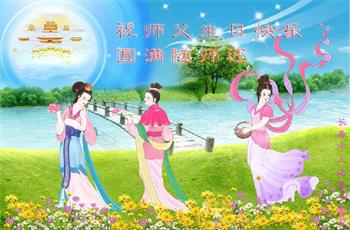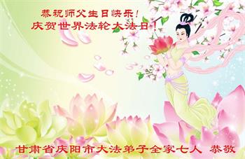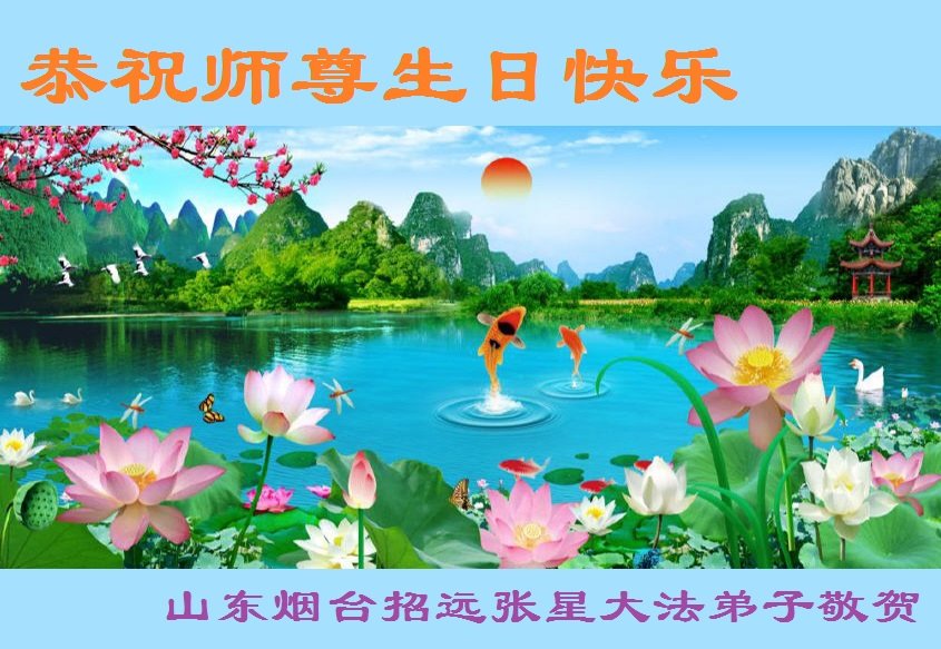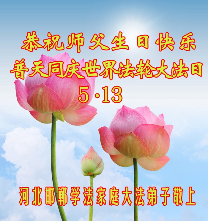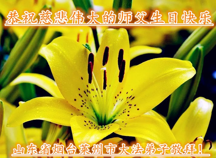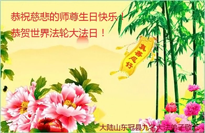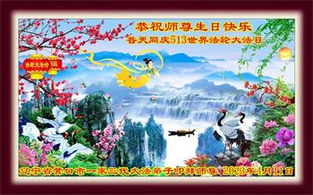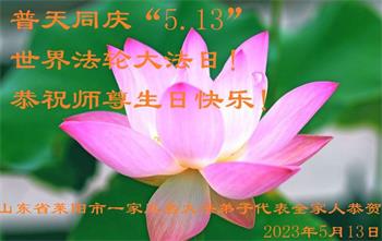 感谢李大师一直在看护着我们全家及所有的世人!使我们全家平安的度过了这乱世的年头。在此我作为一名大法弟子家属衷心的恭祝李大师生日快乐!