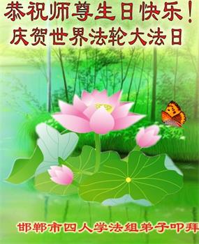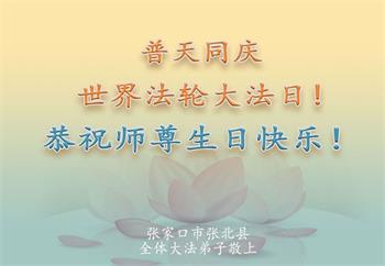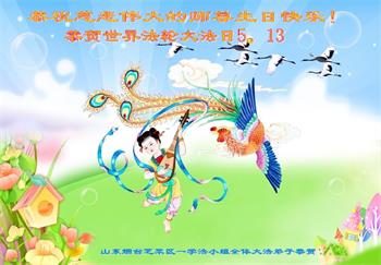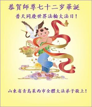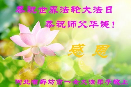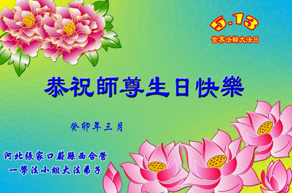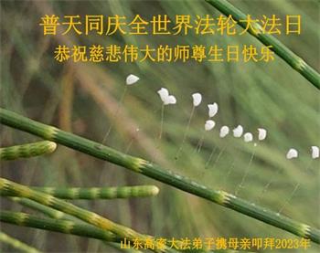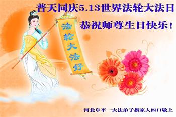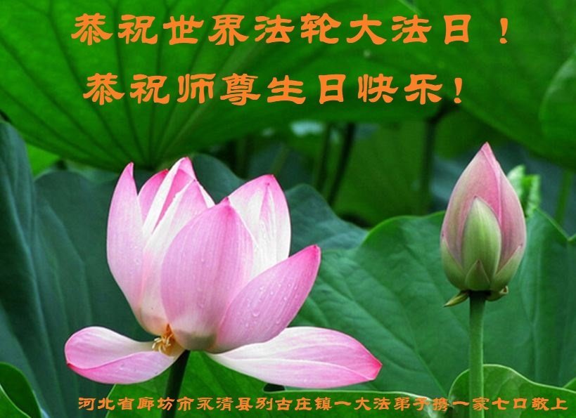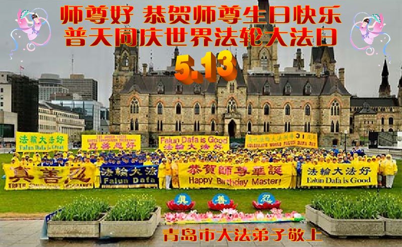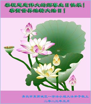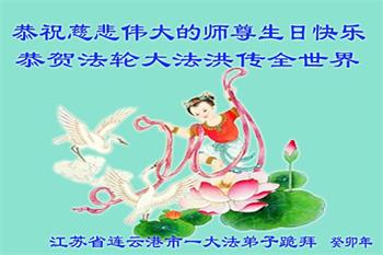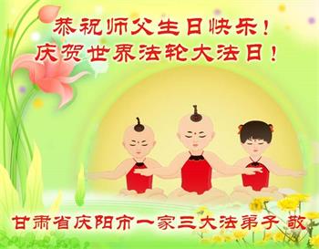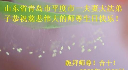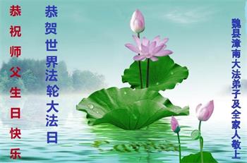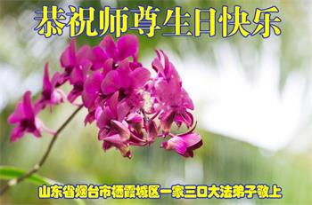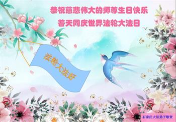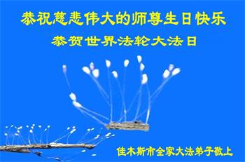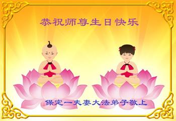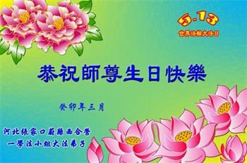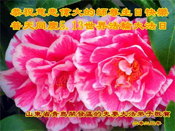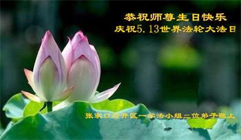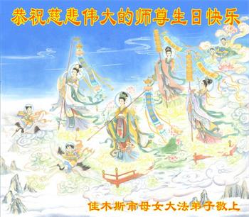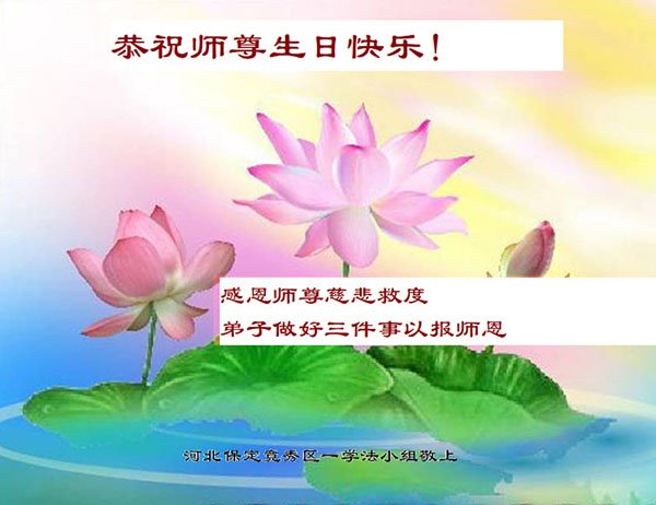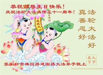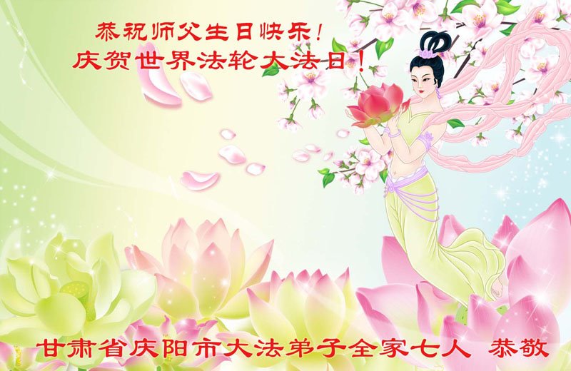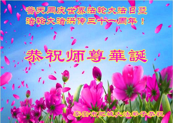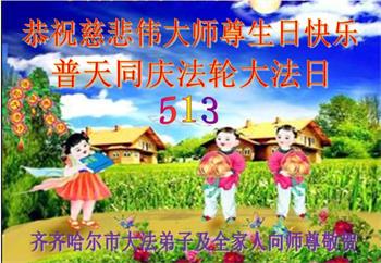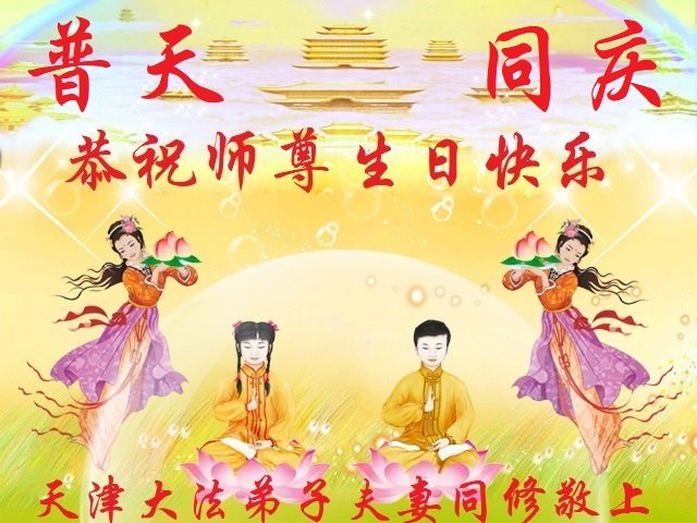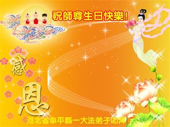 感谢李大师一直在看护着我们全家及所有的世人!使我们全家平安的度过了这乱世的年头。在此我作为一名大法弟子家属衷心的恭祝李大师生日快乐!
