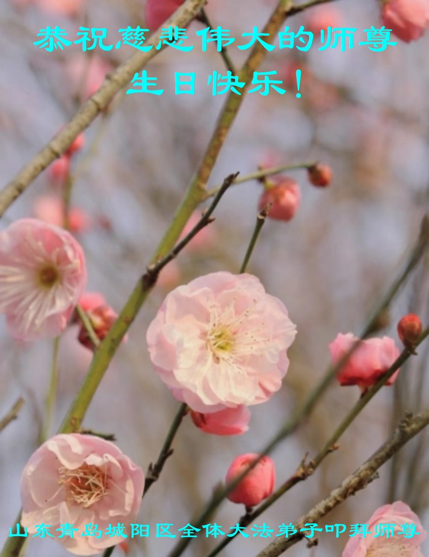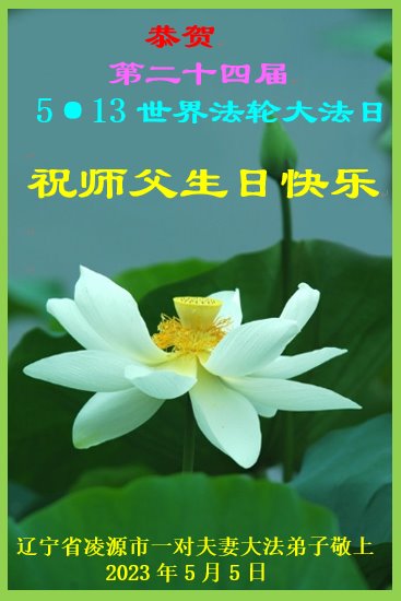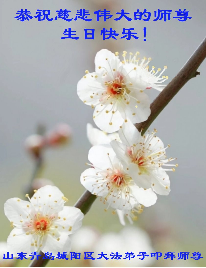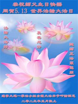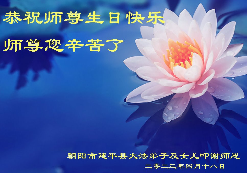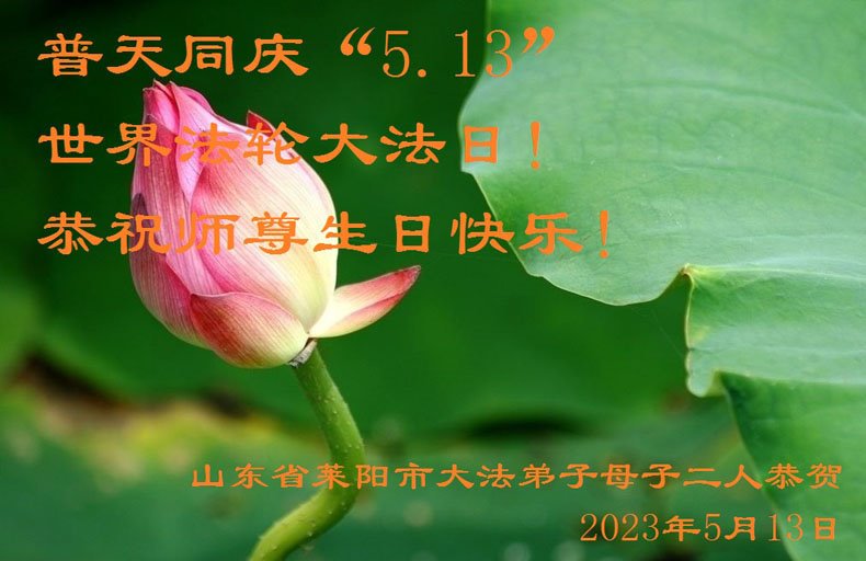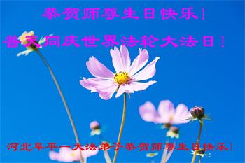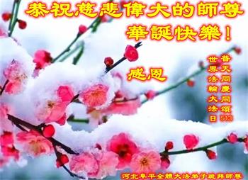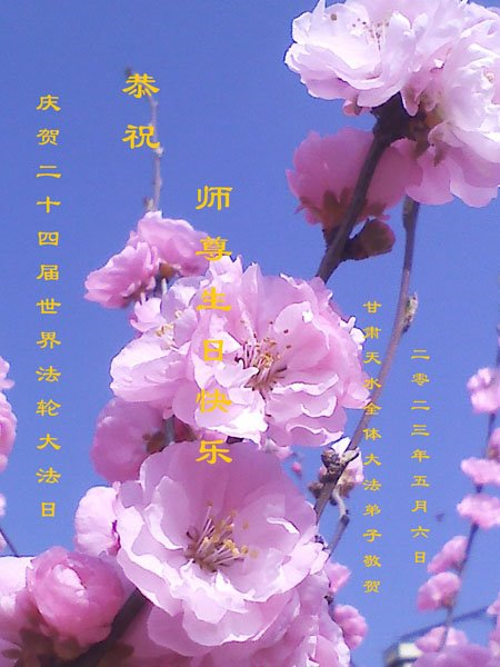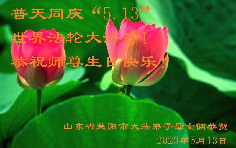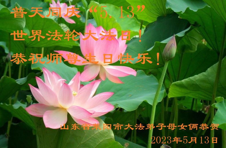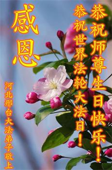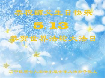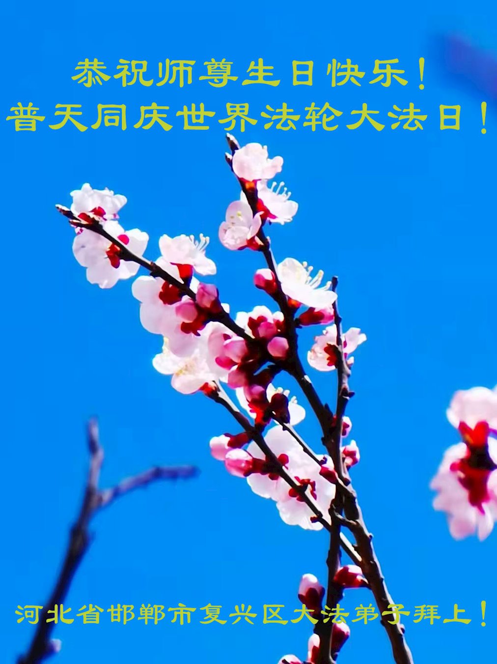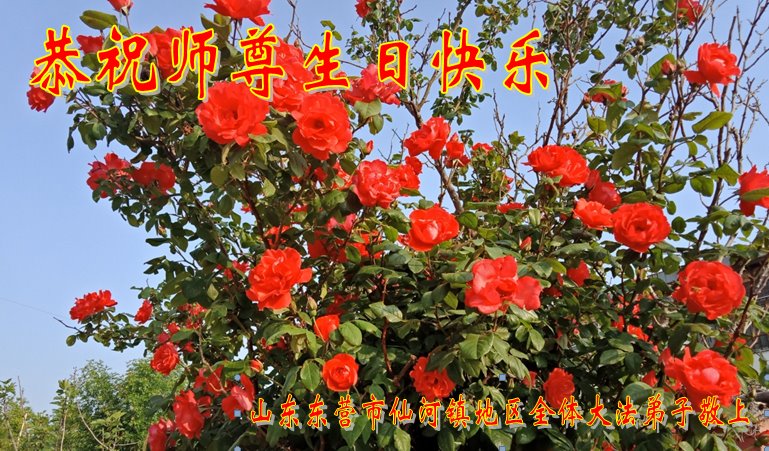 尊敬的李大师好!我是大法弟子的家人。明媚的五月,春风送暖,百花盛开,姹紫嫣红,春意盎然,喜逢大师华诞,诚心恭贺李大师生日快乐!大师新年发表的《为什么会有人类》的文章,我拜读了,并且听了好多遍。这是大师赐予人类的宝物,深感大师佛恩浩荡!感谢大师的慈悲救度!我也要做一个正直、善良、知感恩的好人。我天天诚心敬念”法轮大法好、真善忍好”九字真言。有大师的护佑,我们都是幸运的,个个幸福安康。