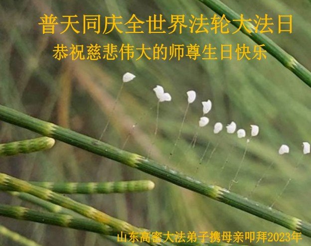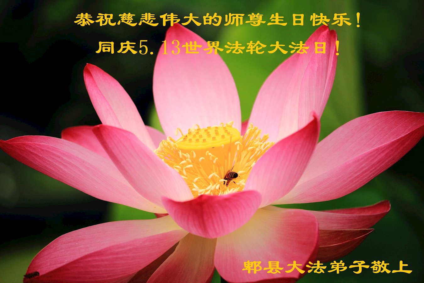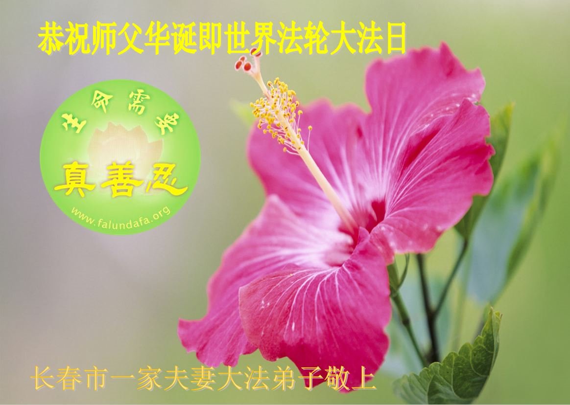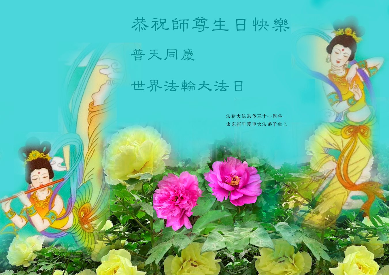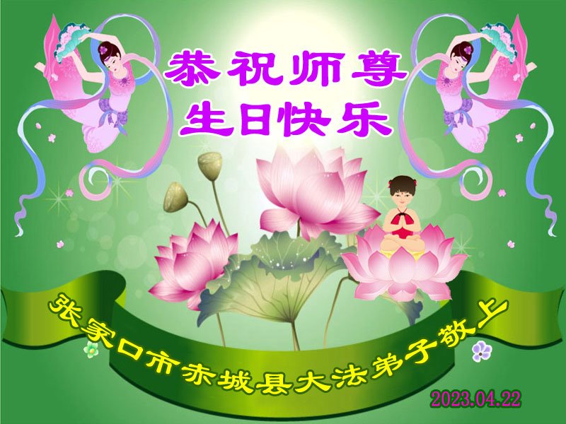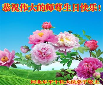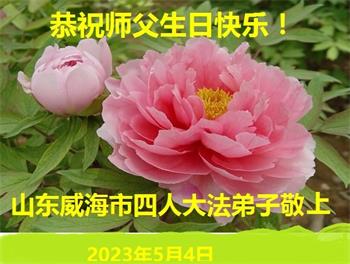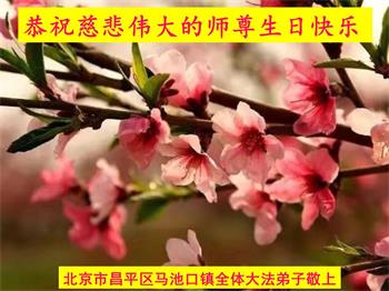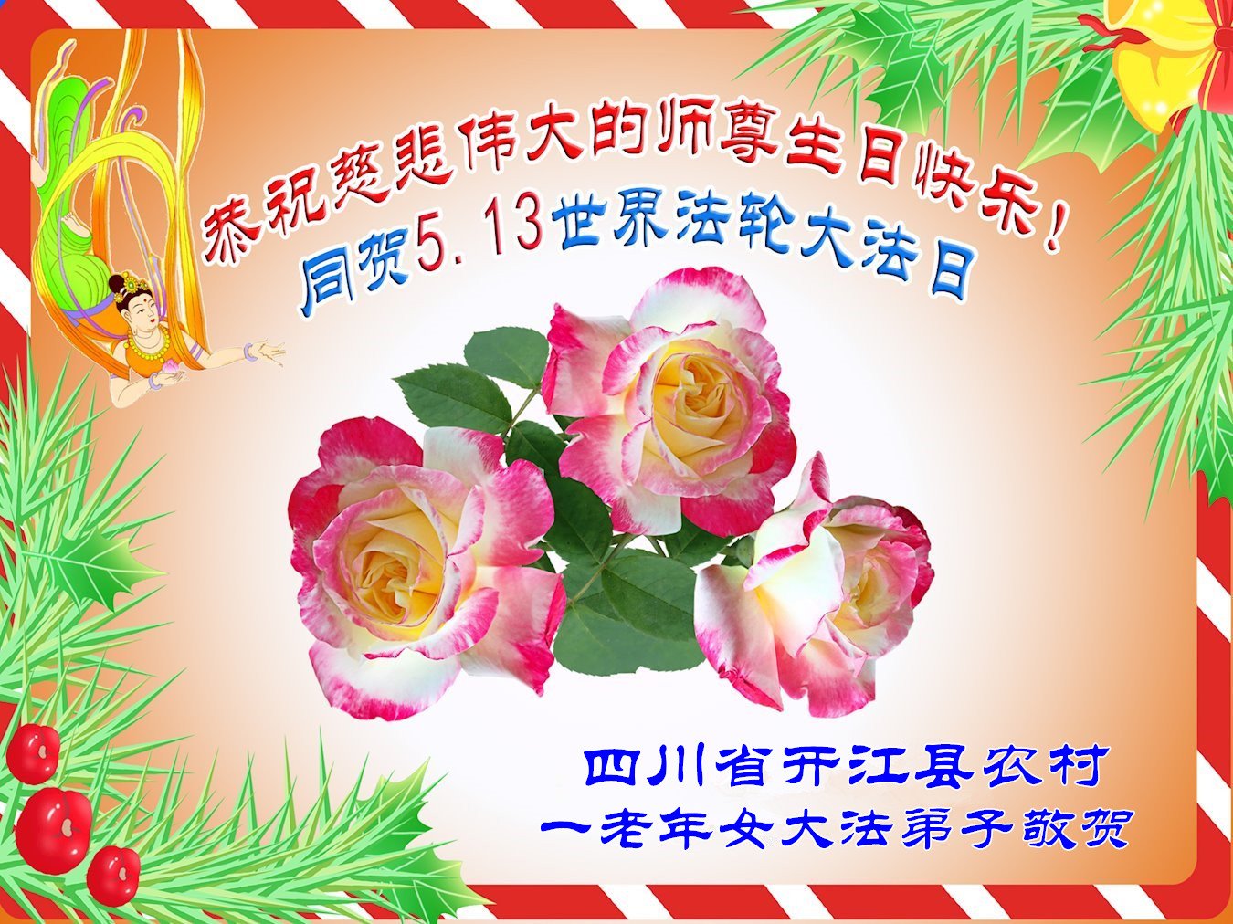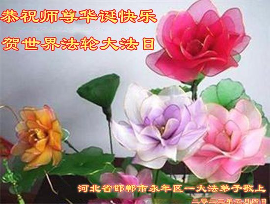 尊敬的李大师好!我是大法弟子的家人。明媚的五月,春风送暖,百花盛开,姹紫嫣红,春意盎然,喜逢大师华诞,诚心恭贺李大师生日快乐!大师新年发表的《为什么会有人类》的文章,我拜读了,并且听了好多遍。这是大师赐予人类的宝物,深感大师佛恩浩荡!感谢大师的慈悲救度!我也要做一个正直、善良、知感恩的好人。我天天诚心敬念”法轮大法好、真善忍好”九字真言。有大师的护佑,我们都是幸运的,个个幸福安康。