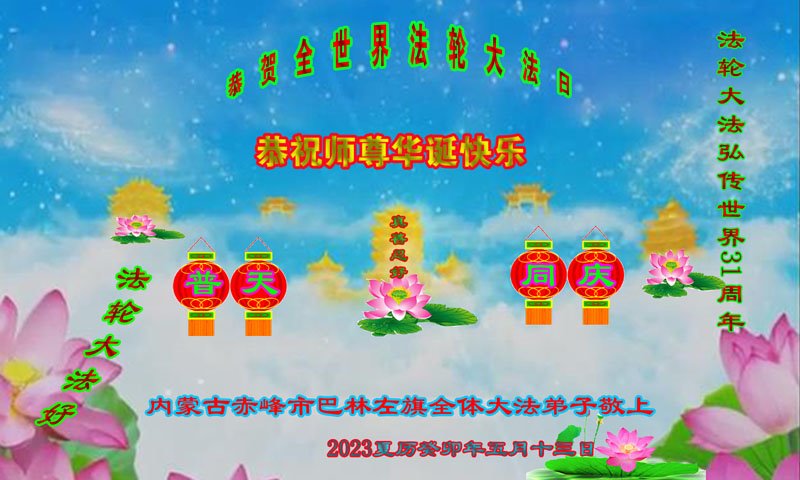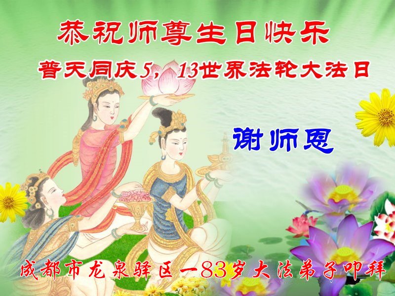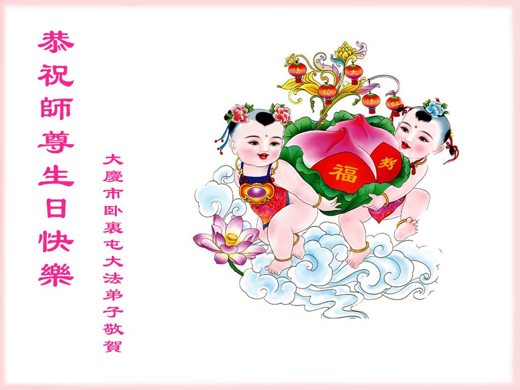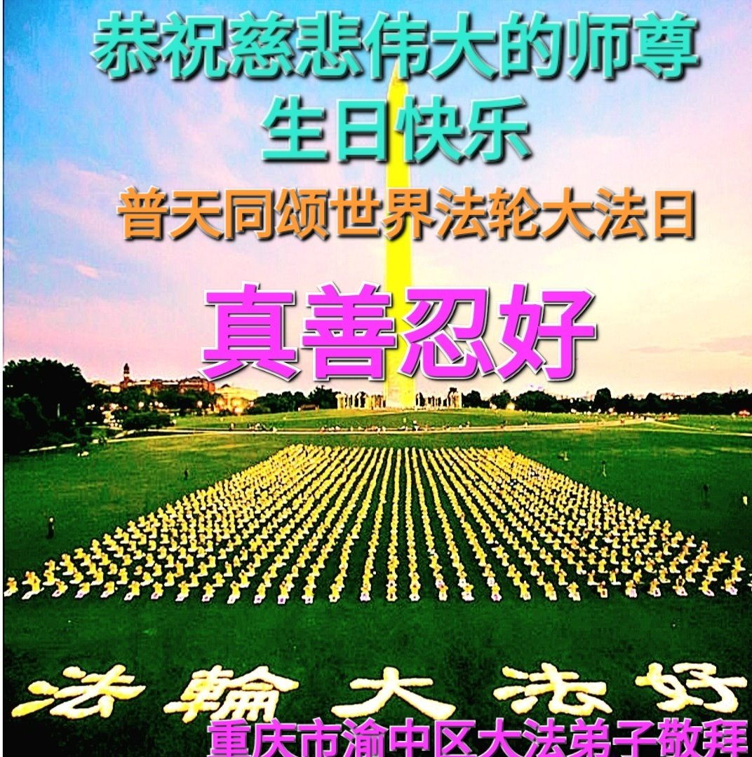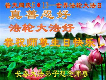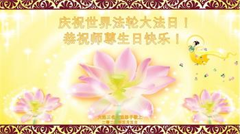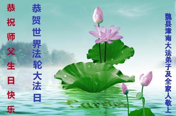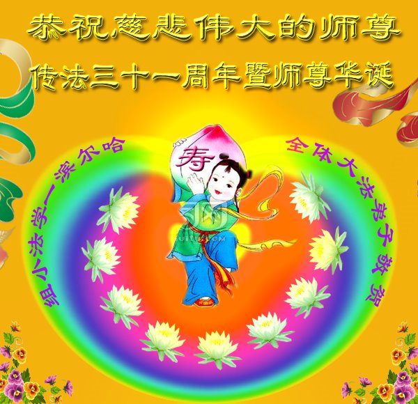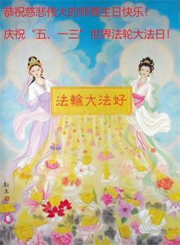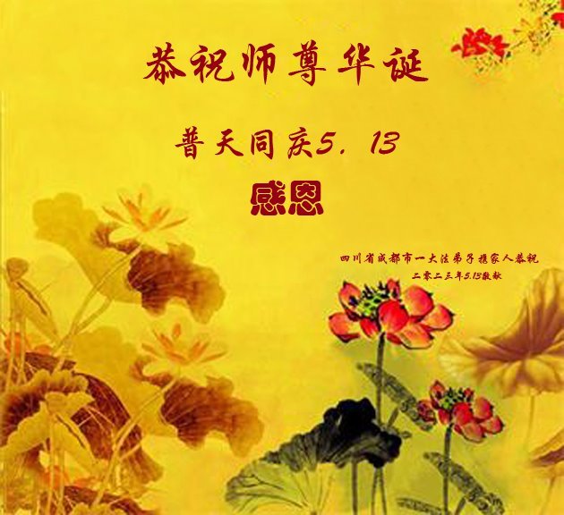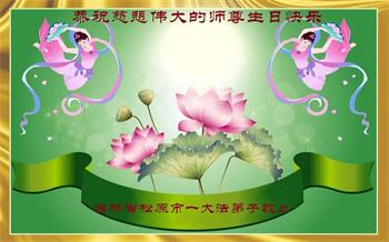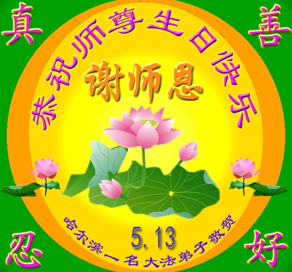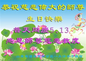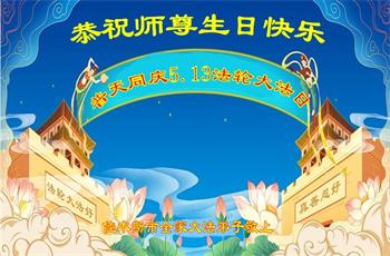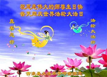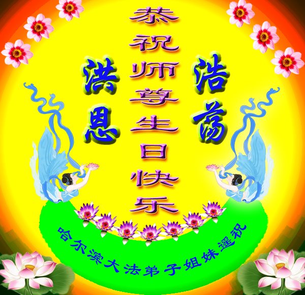 共同祝愿法轮大法永远洪传世界!恭祝慈悲伟大的李洪志大师生日快乐!