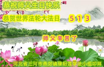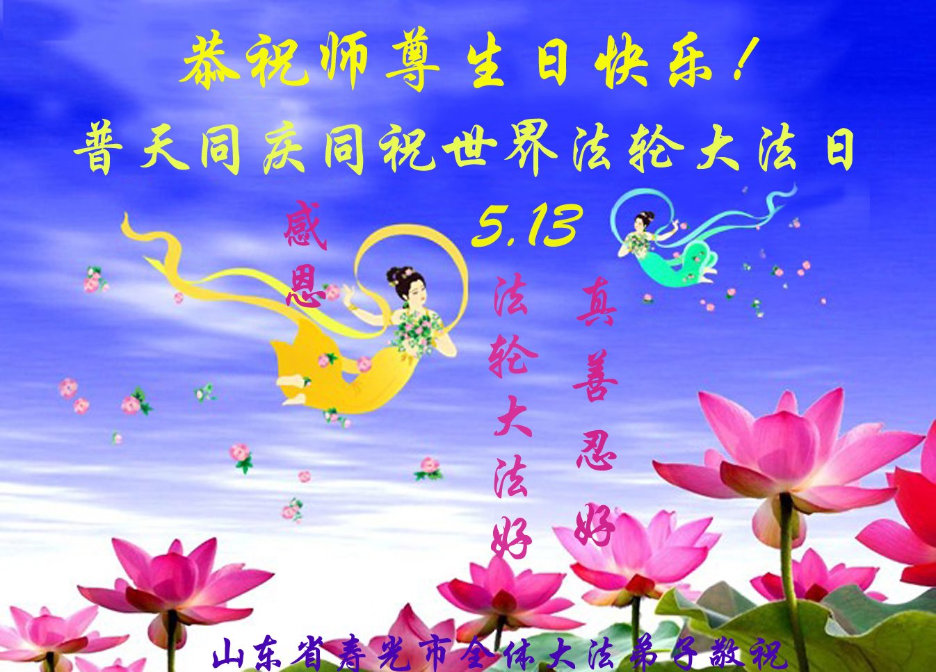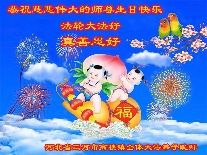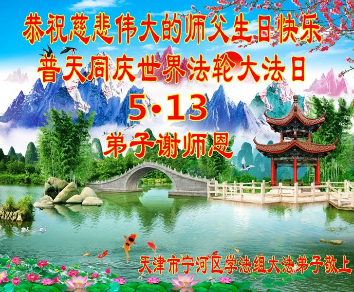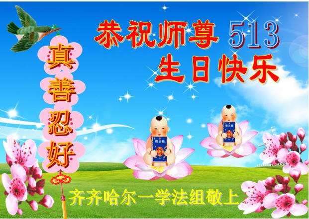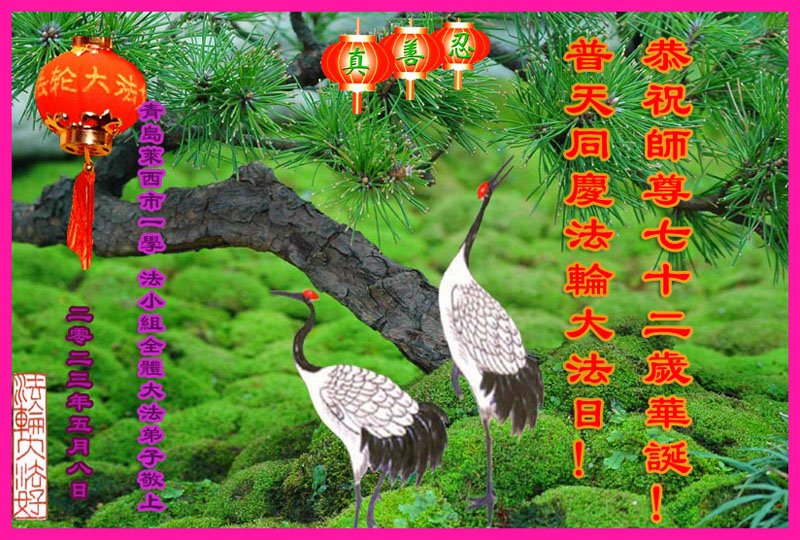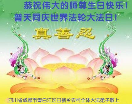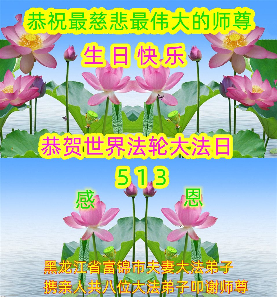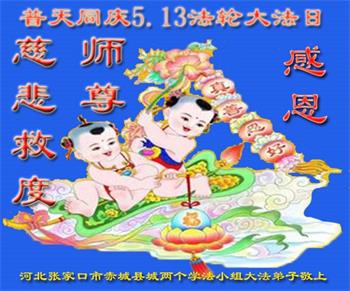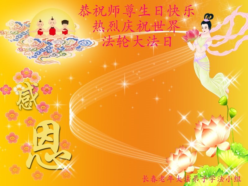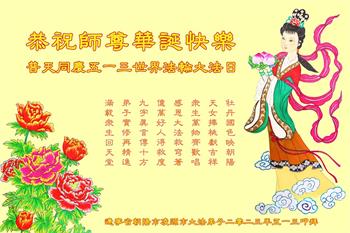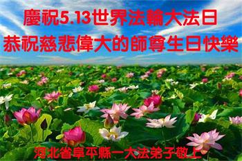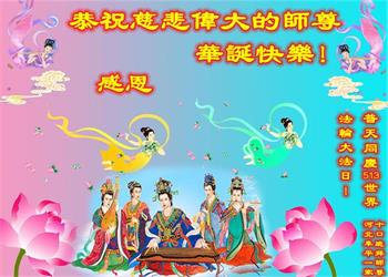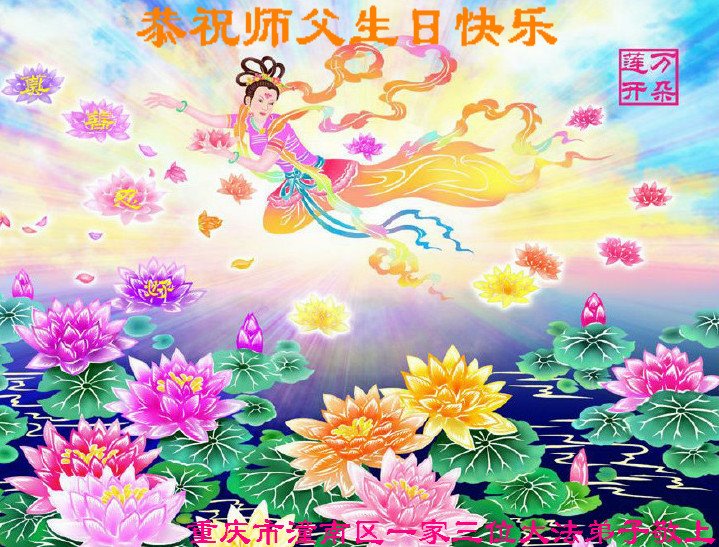 共同祝愿法轮大法永远洪传世界!恭祝慈悲伟大的李洪志大师生日快乐!
