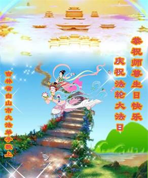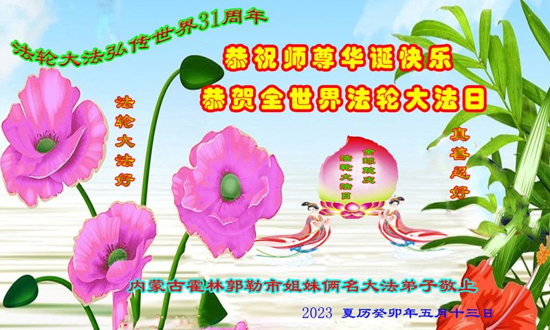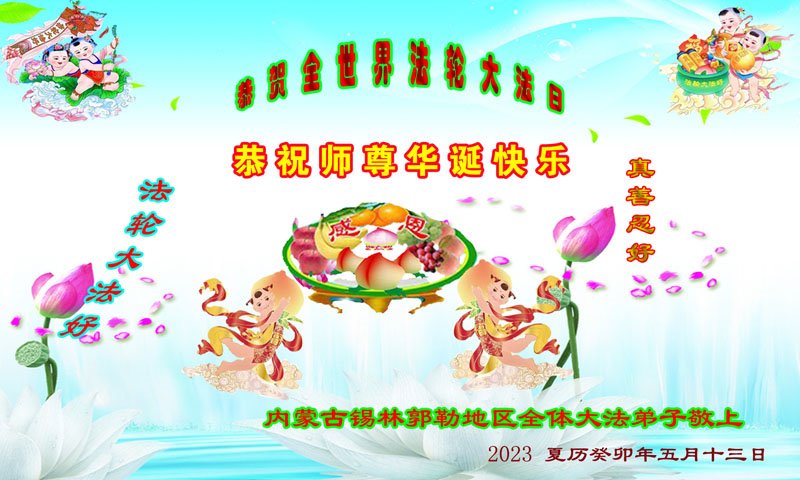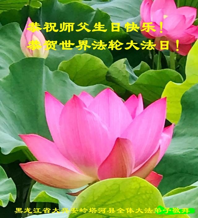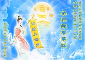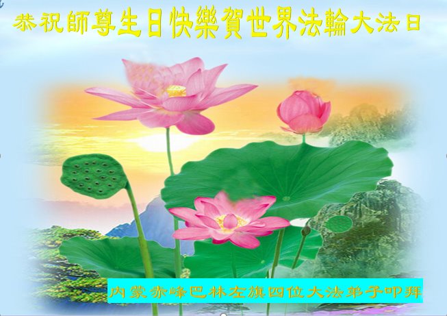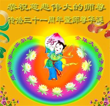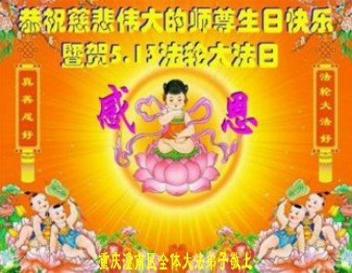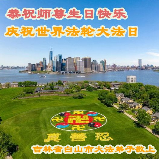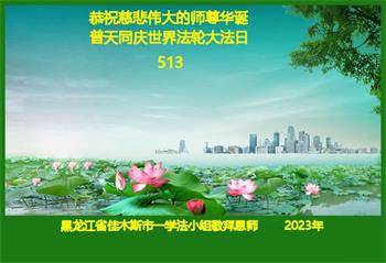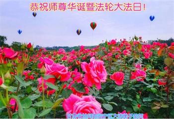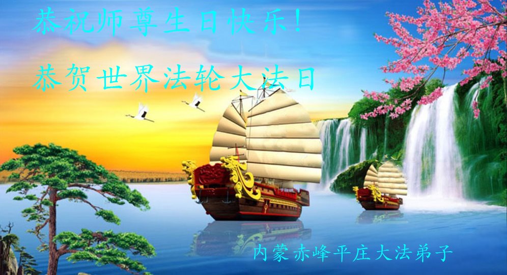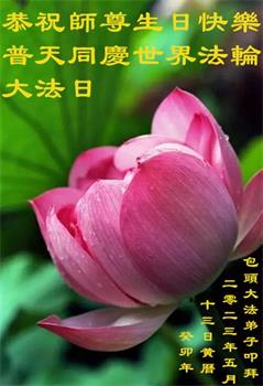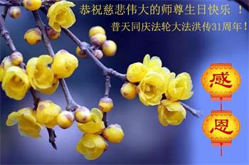 在此,敬贺法轮大法日!恭祝慈悲伟大的师父生日快乐!