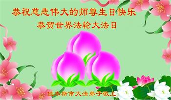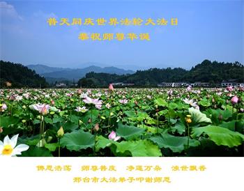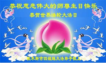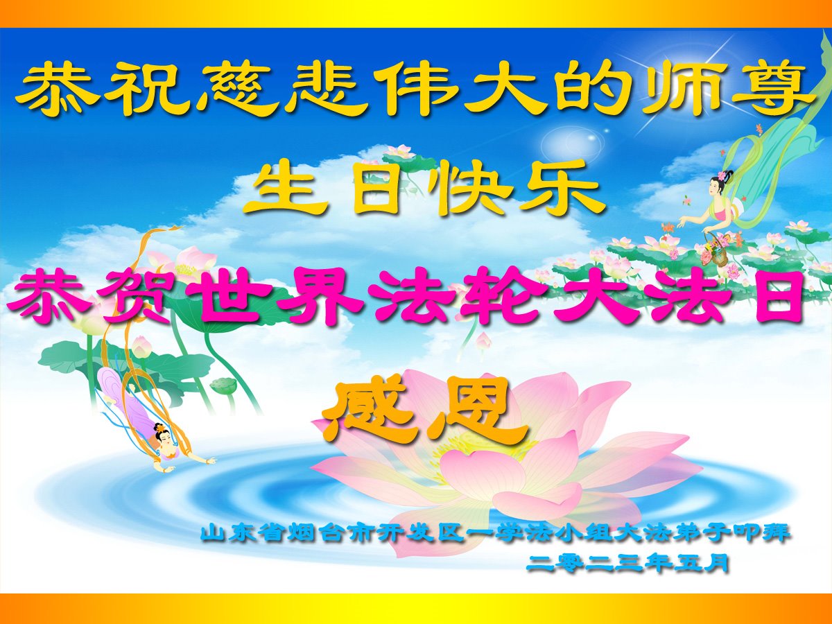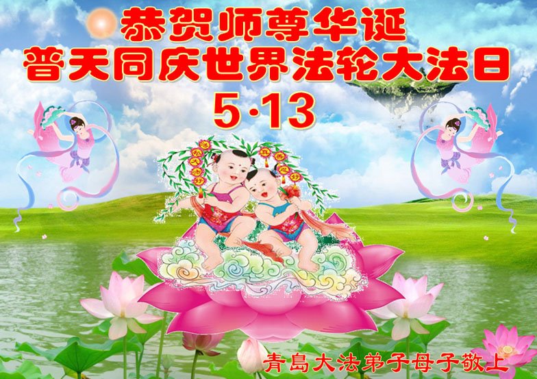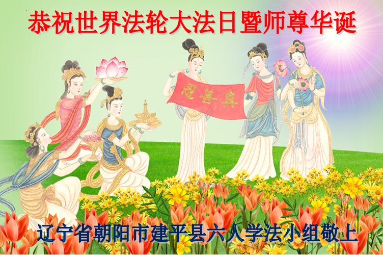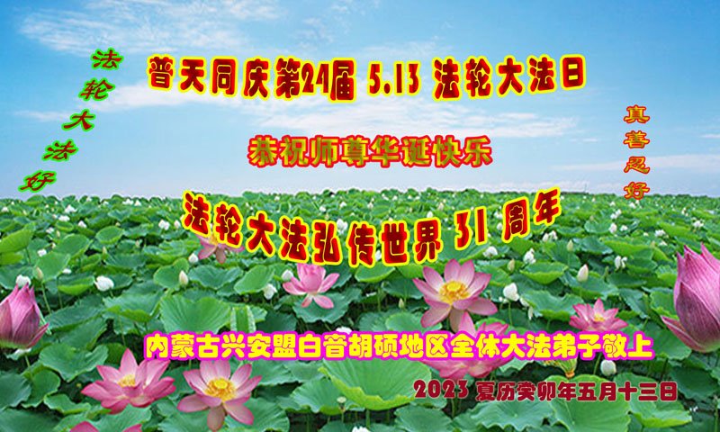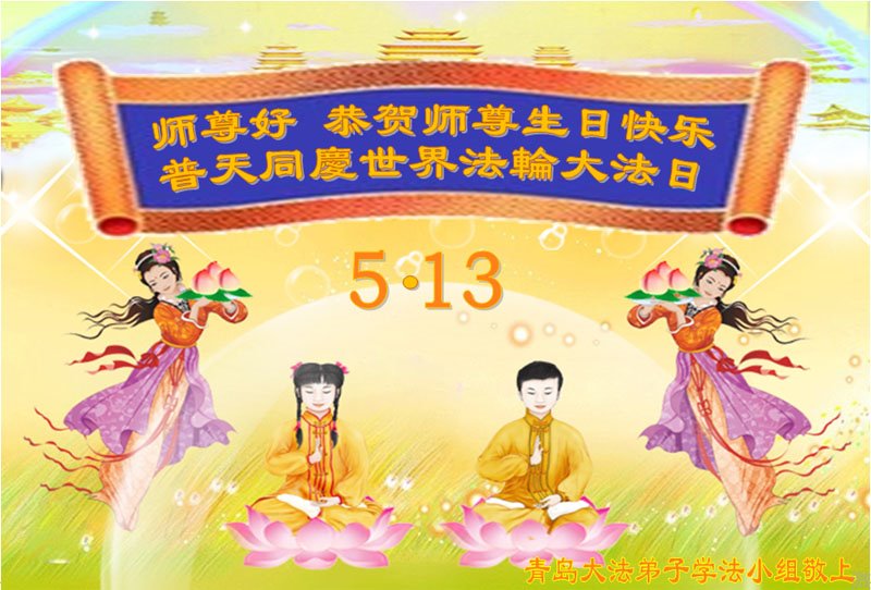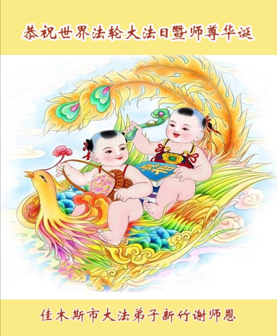 在此,敬贺法轮大法日!恭祝慈悲伟大的师父生日快乐!