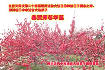 在这普天同庆第二十四届世界法轮大法日震撼寰宇最伟大而殊胜的日子里,我们四川省巴中市公安系统全体大法弟子恭祝师尊生日快乐!