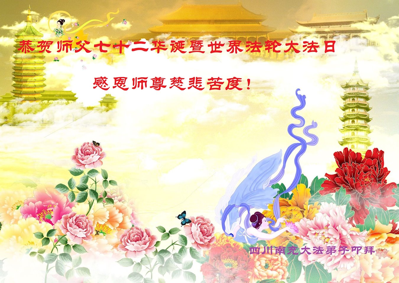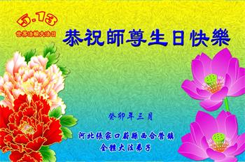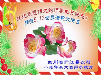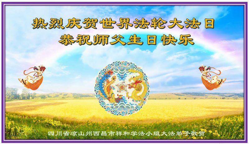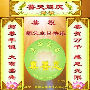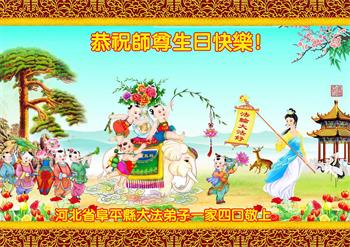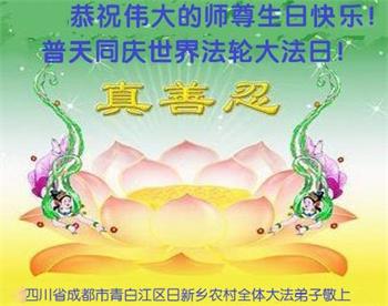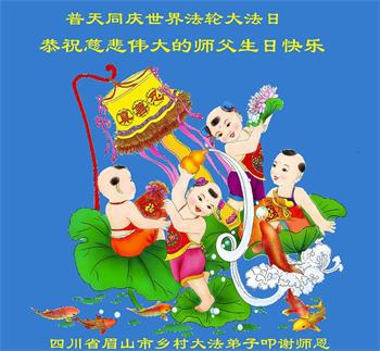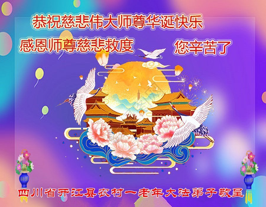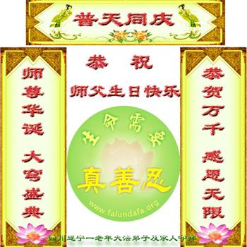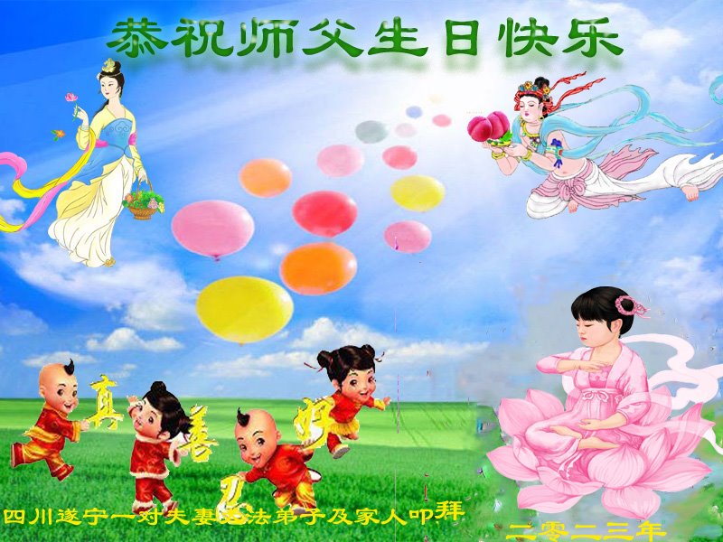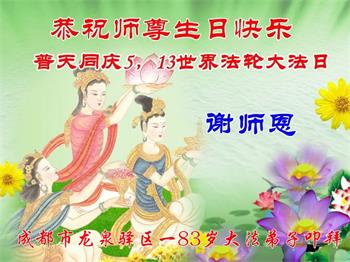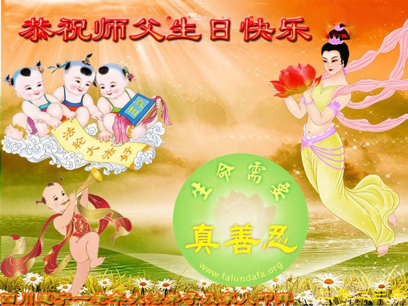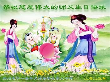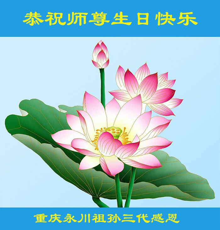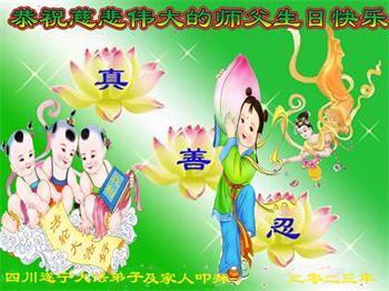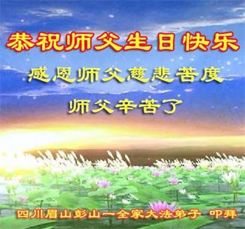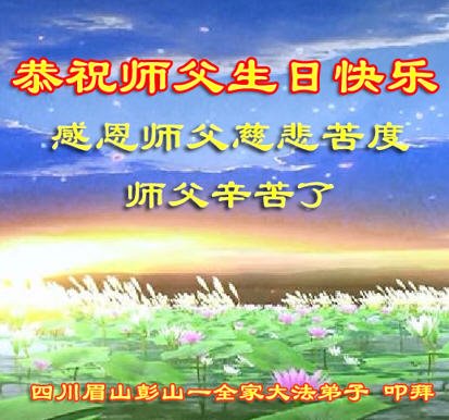 四川省大法弟子家人恭祝慈悲伟大的李大师生日快乐!