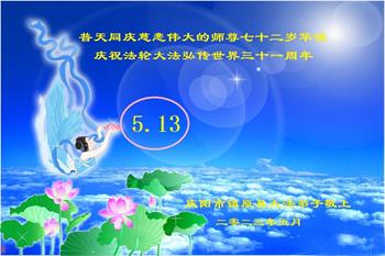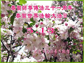 庆祝法轮大法的日子到了,我万分感激法轮大法,我和千千万万被大法救度的众生一起感恩法轮大法,同庆法轮大法日。