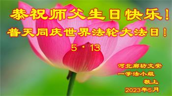 <英文版: https://en.d2s3ombhnov3zf.cloudfront.net/html/articles/2023/5/12/208703.html>中国公检法司、军队大法弟子恭贺师尊华诞