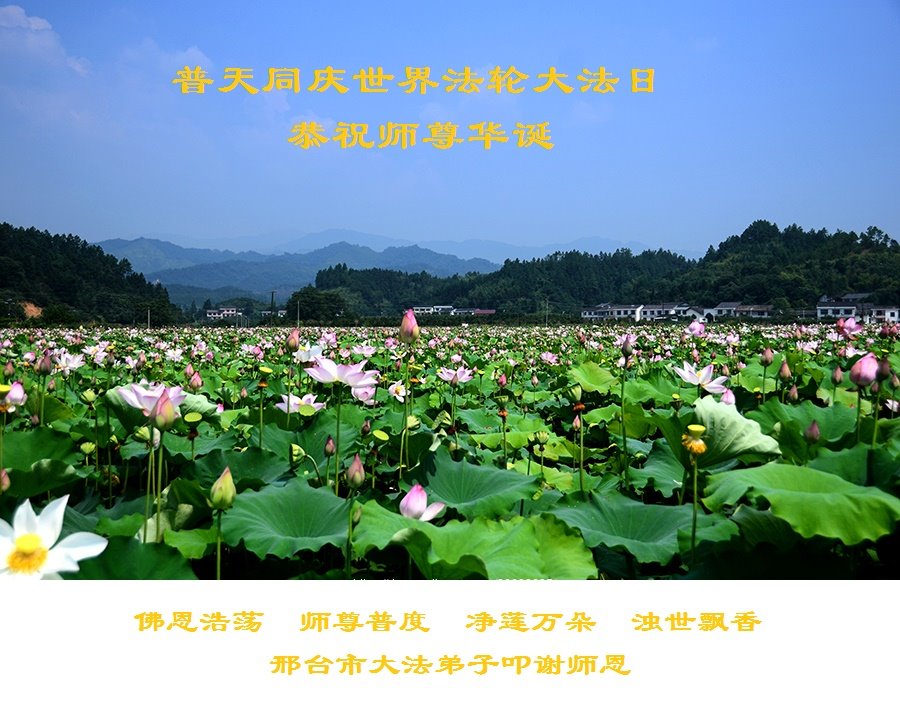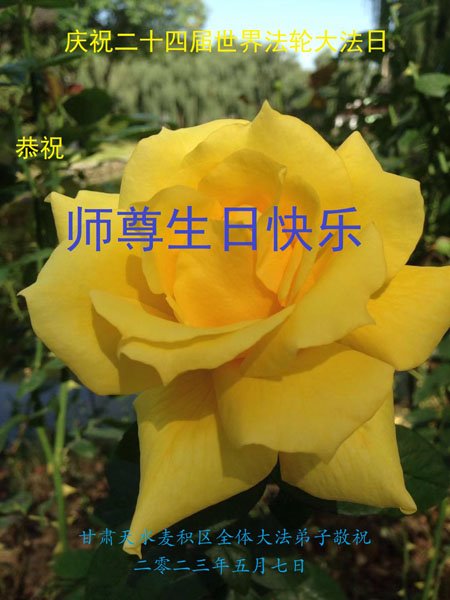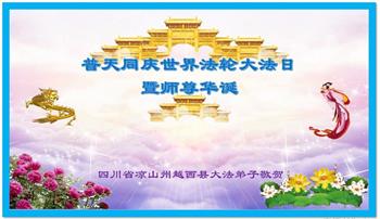 在宇宙万象更新,众生期盼大法师尊的归来,大法弟子归位的时刻,迎来了师尊华诞,迎来了第二十四届世界法轮大法日。在普天同庆第二十四届世界法轮大法日的辉煌日子到来之际,四川省巴中市一法官大法弟子向师尊叩首,恭祝师尊生日快乐!