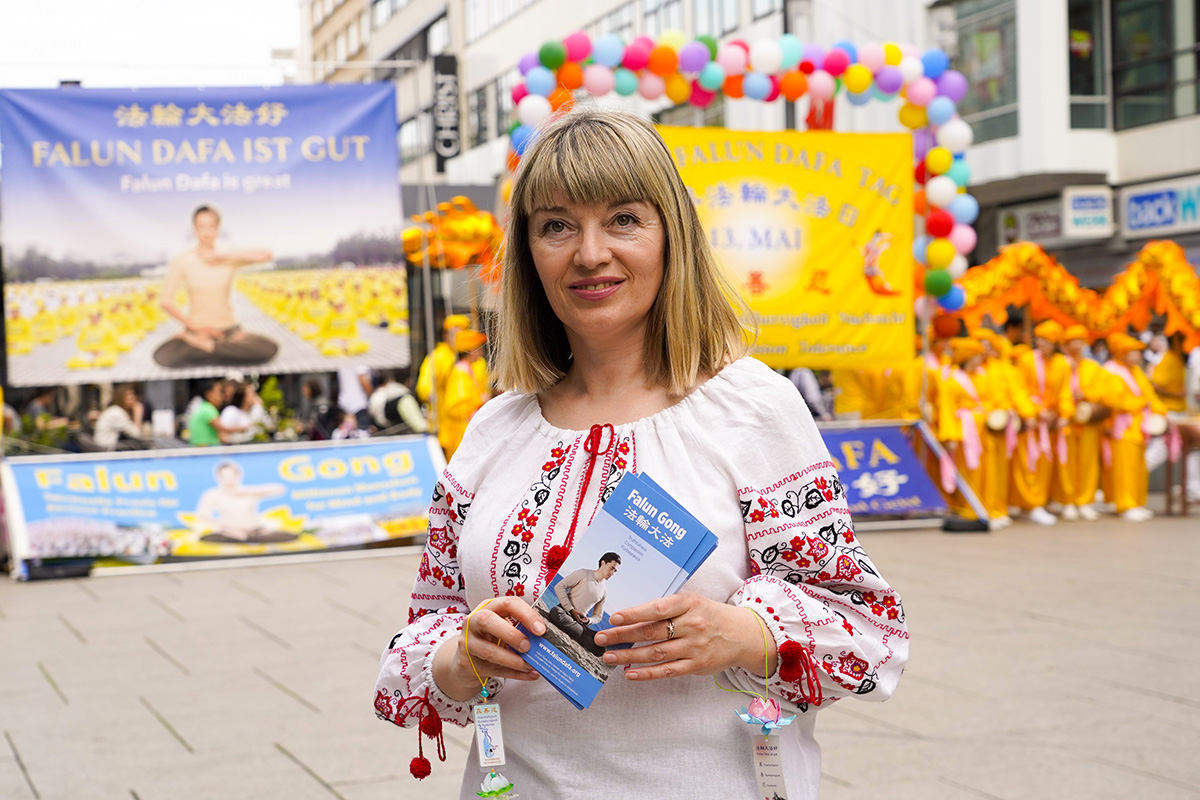 修炼二十二年的老学员卢德米拉(Ludmila),去年由于俄乌战争来到德国。在乌克兰时,她是一位语言治疗师,从事儿童语言发育的教育工作。