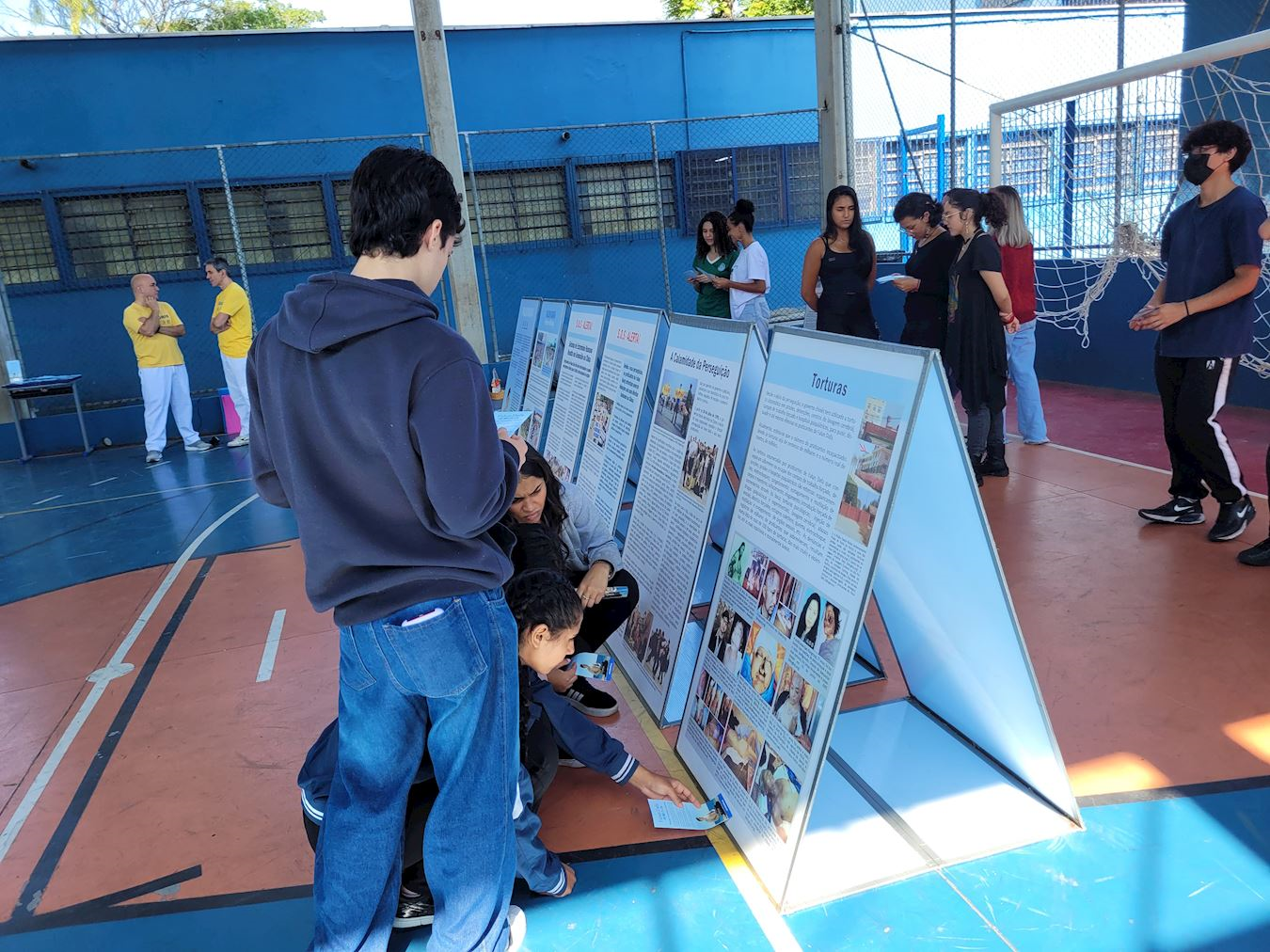 ![]() 图4~5:二零二三年五月四日,Joaquim Luiz de Brito州立学校的学生和老师们认真阅读揭露中共迫害法轮功学员的展板,法轮功学员回答了他们提出的问题。 |