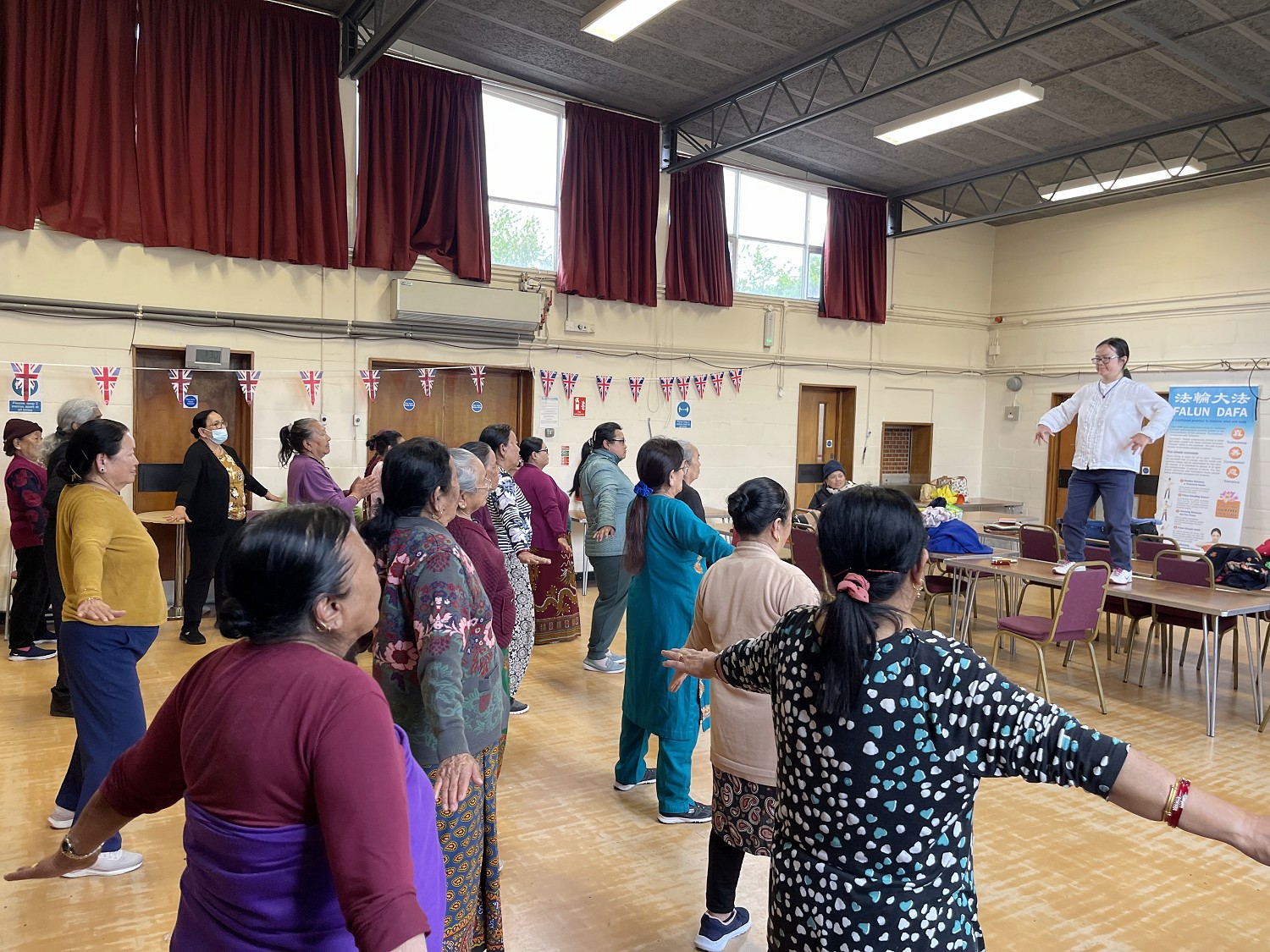 出席午餐后,活动的多是尼泊尔族裔英国陆军退伍军人和他们的妻子。他们和当地白人包括其他族裔的人都非常喜爱法轮功的音乐和动作,希望学员第二天(九日)中午再来小区礼堂教他们。小区经理季昂(Gyan)因此决定在每周二中午开始教功班,请法轮功学员现场教功。