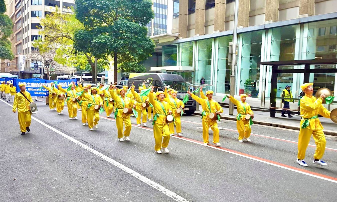 长达数百米的游行队伍由声势浩荡的天国乐团领队,威武雄壮的鼓乐声撼动人心;紧随其后的是手持莲花、身着古装的仙女,宛若天降,天人同庆;英姿勃勃的腰鼓队欢乐舞动压阵,欢庆越来越多的中国人明白真相,选择远离中共!