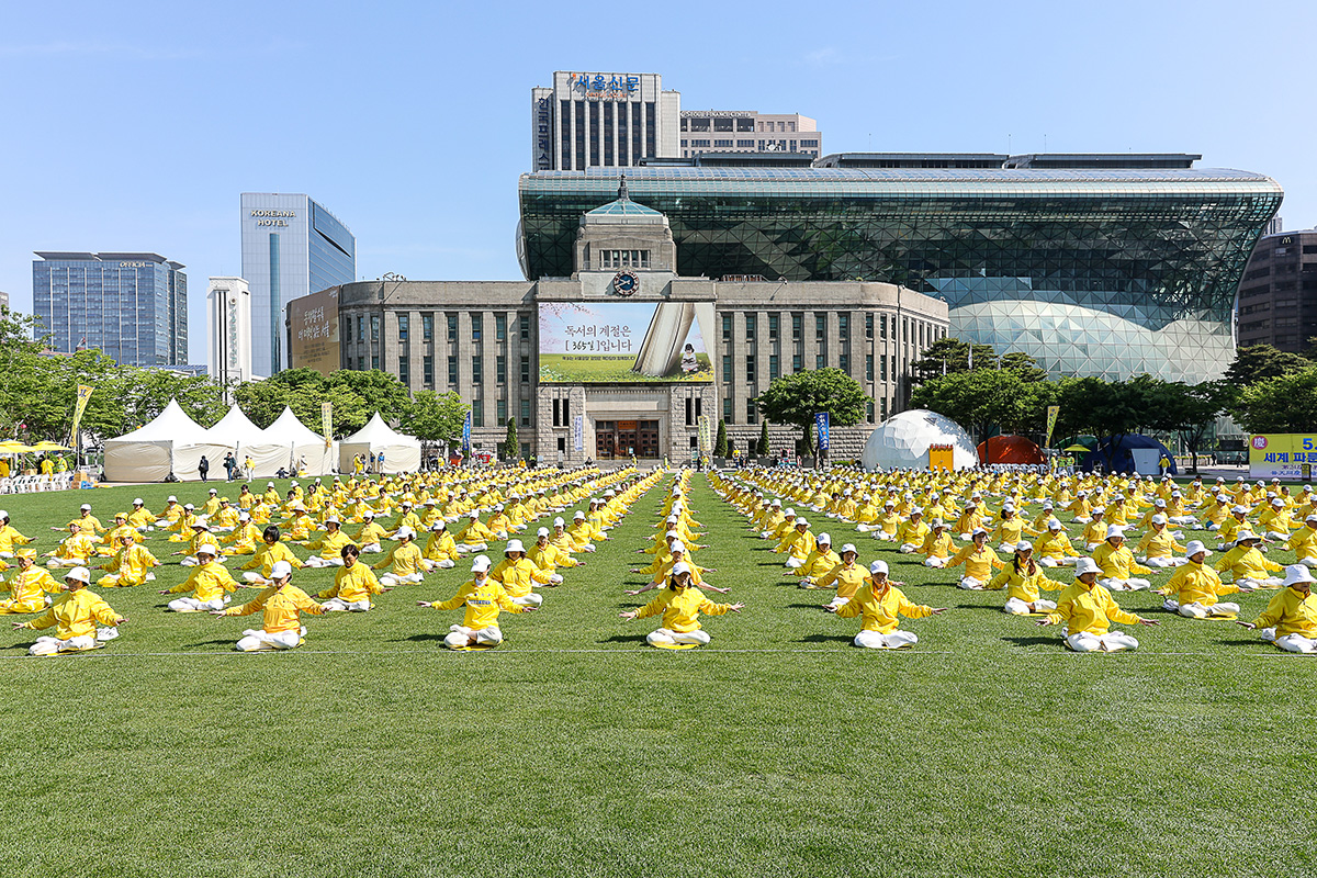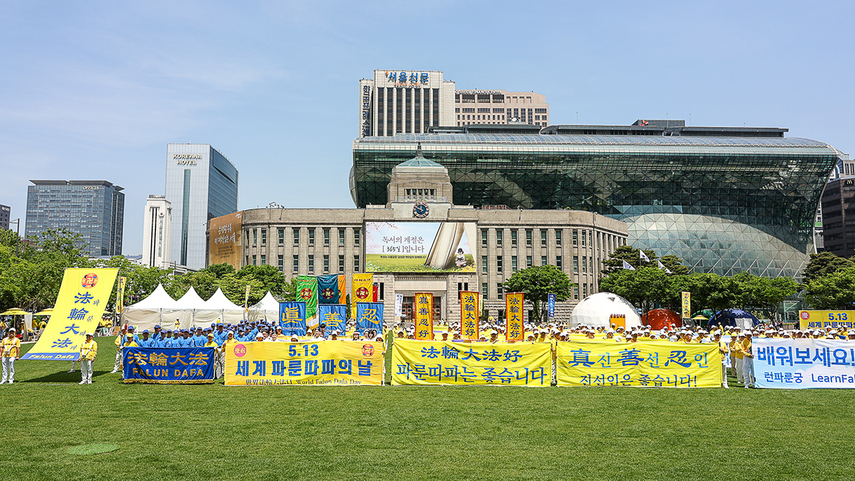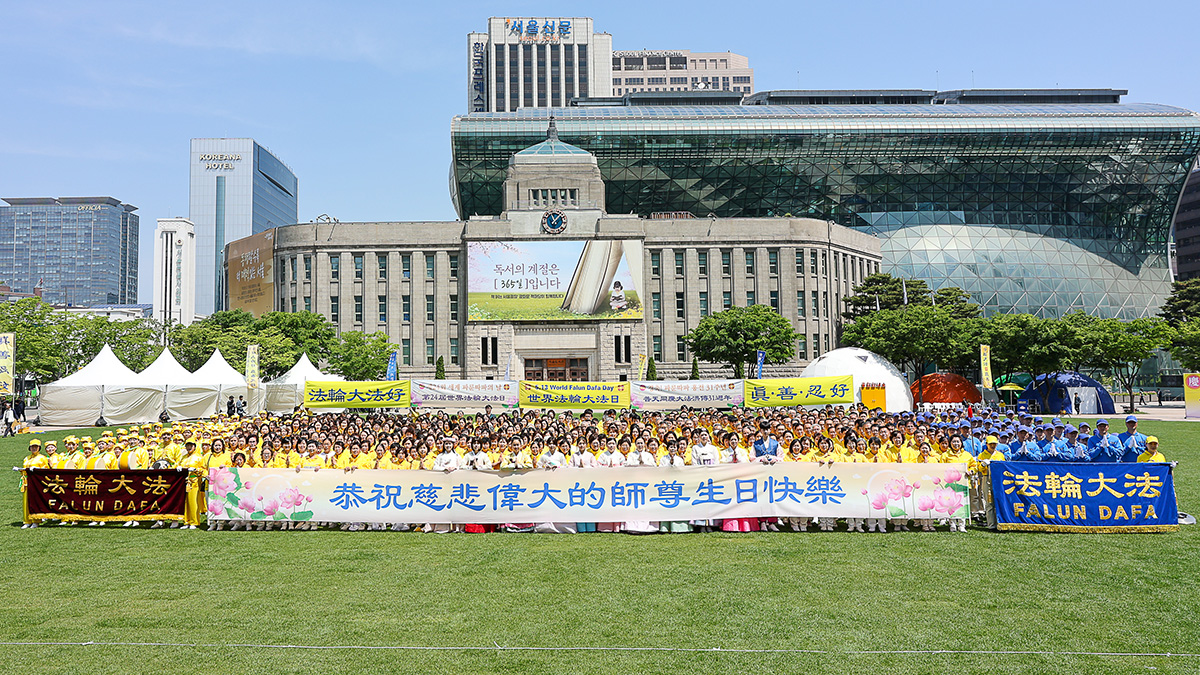 ![]() 图4:二零二三年五月八日上午,韩国法轮功学员集聚首尔市厅前的首尔广场,恭祝师尊华诞快乐。 |
