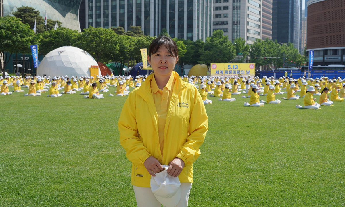 前瑜伽教练丁成玉(五十七岁,京畿道杨平市),在二零零九年开始修炼,今年已经是第十四个年头了。开始修炼时,丁女士正在练其他功法,她说,当听到一位先接触到法轮功的熟人说,“这个功法是真的”时,瞬间感到小腹部位变得暖暖的。