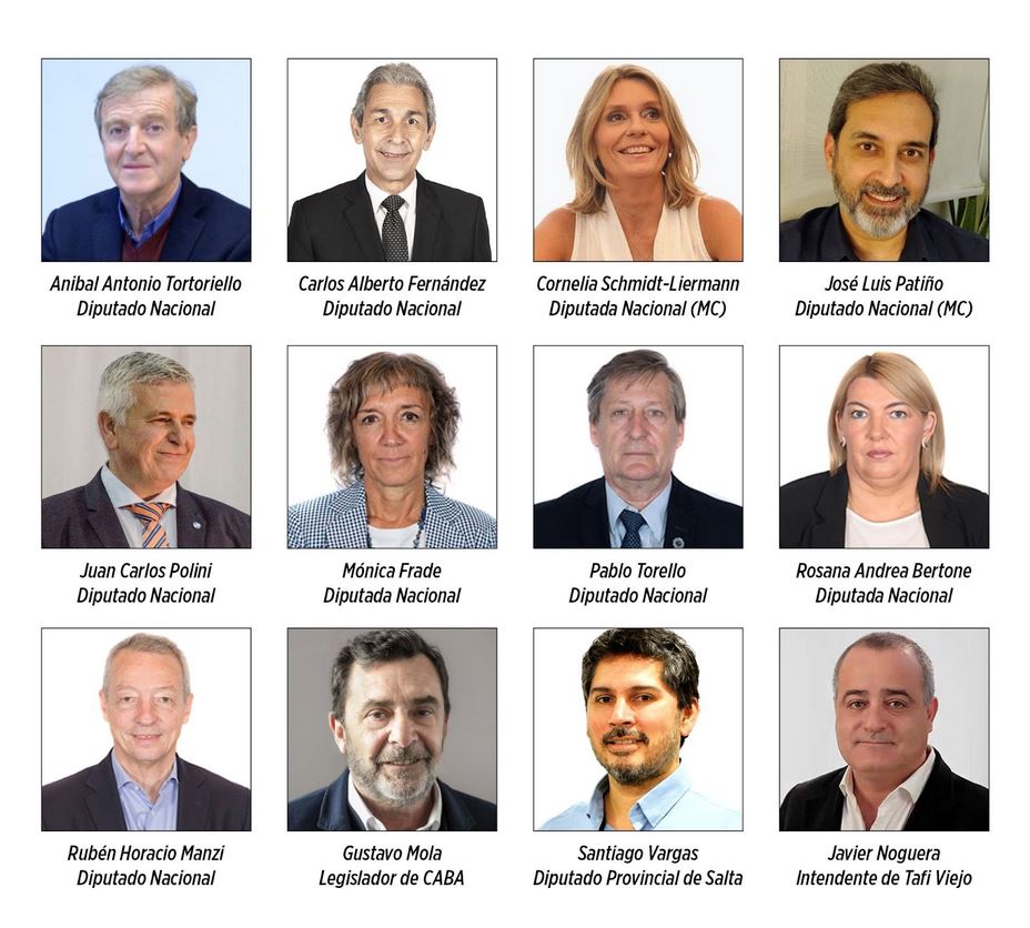 十位阿根廷国民议会议员是:鲁阿尔特(Adriana Noemí Ruarte),托尔托列洛(Aníbal Antonio Tortoriello),费尔南德斯(Carlos Alberto Fernández),施密特-利尔曼(Cornelia Schmidt-Liermann(MC)),帕蒂尼奥(José Luis Patiño(MC)),波利尼(Juan Carlos Polini),弗雷德(Mónica Frade),托雷洛(Pablo Torello),伯尔通(Rosana Andrea Bertone),曼齐(Rubén Manzi)。
