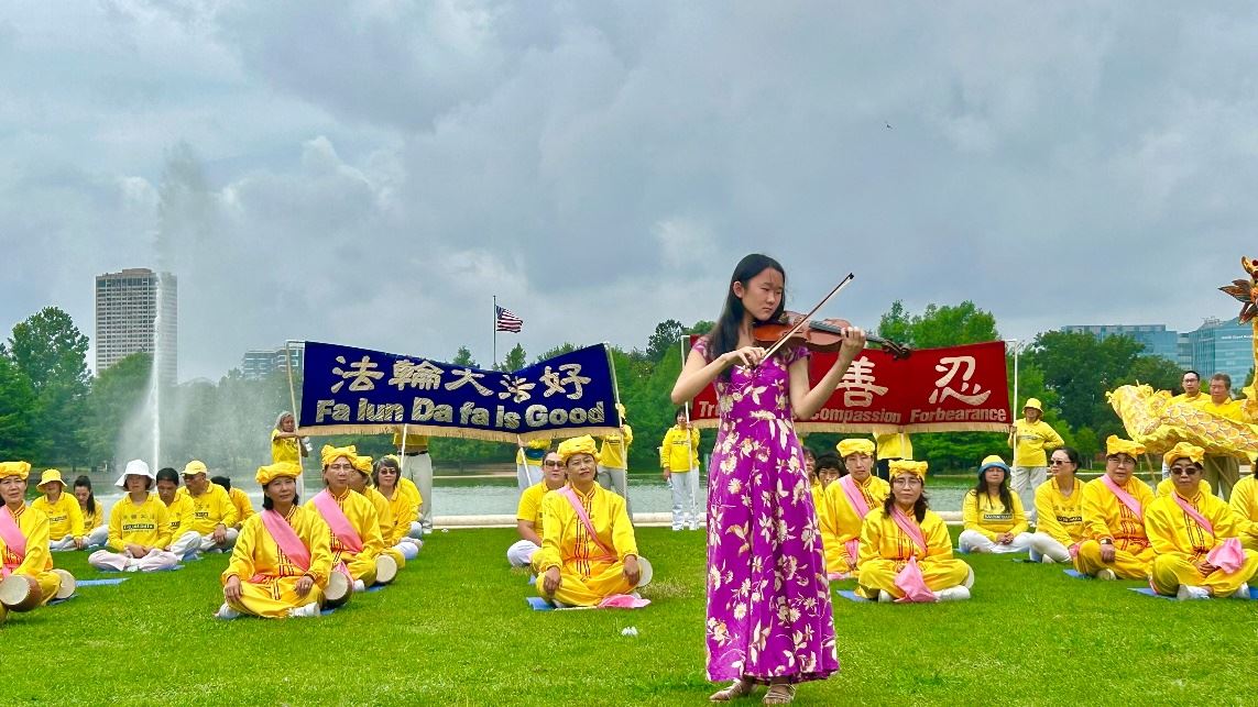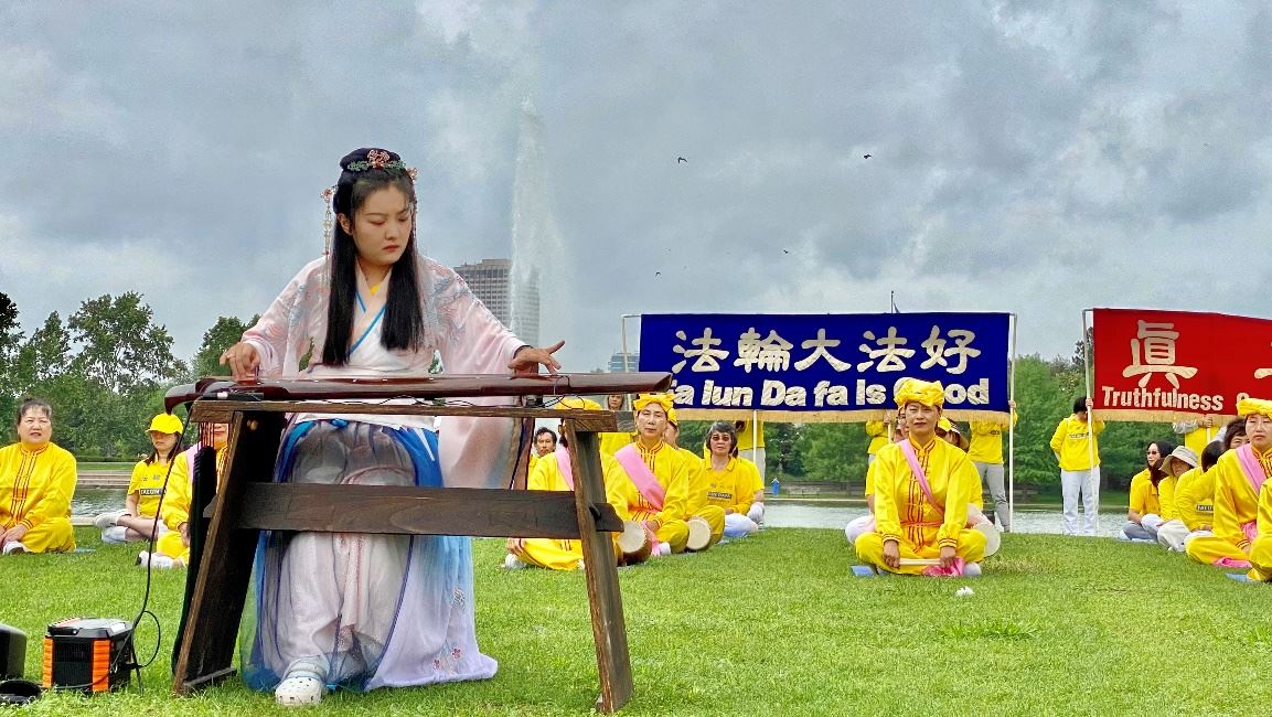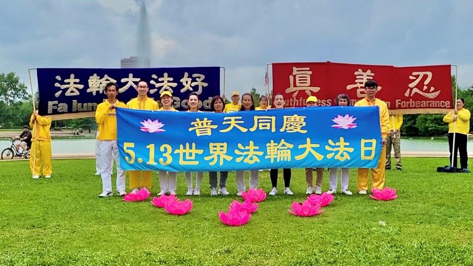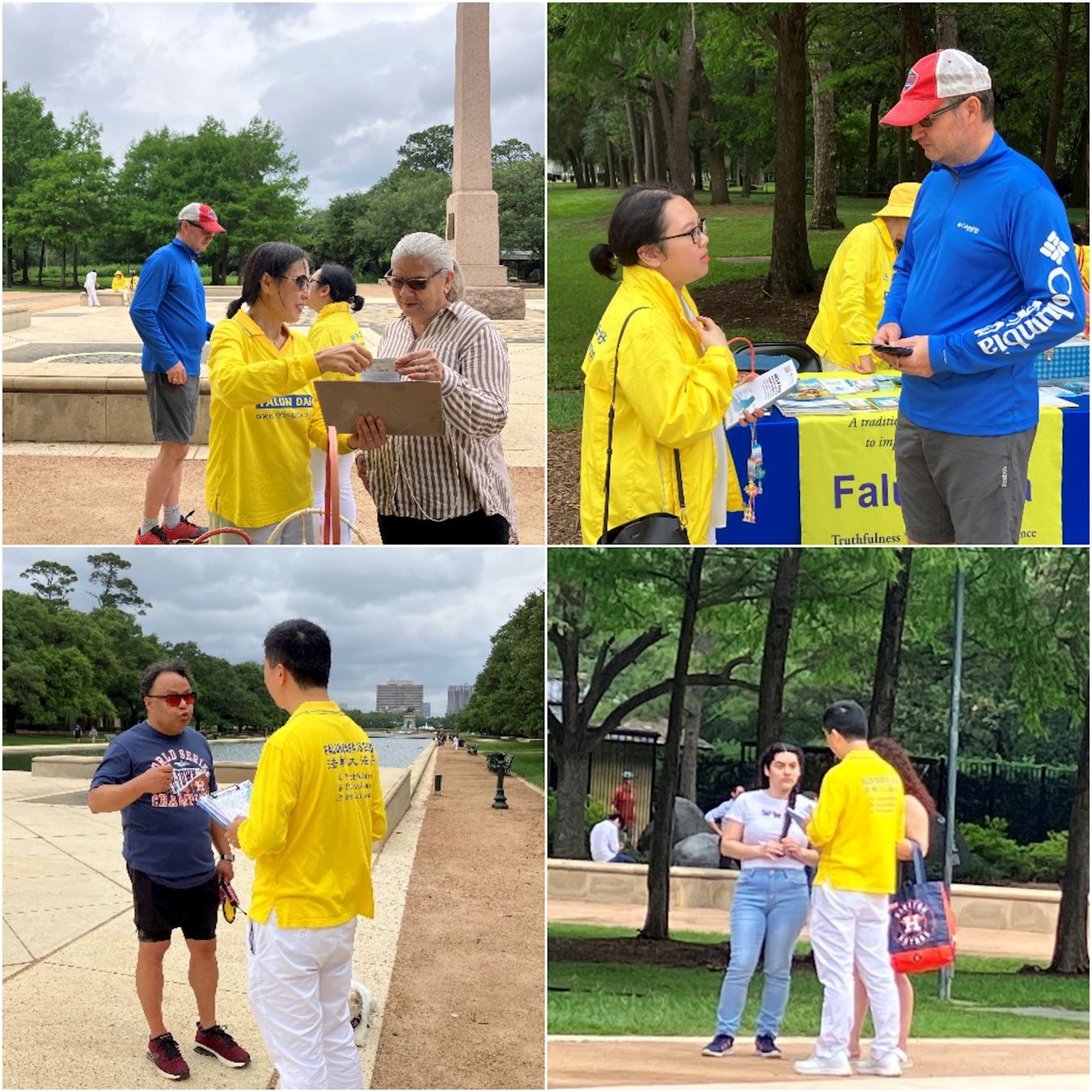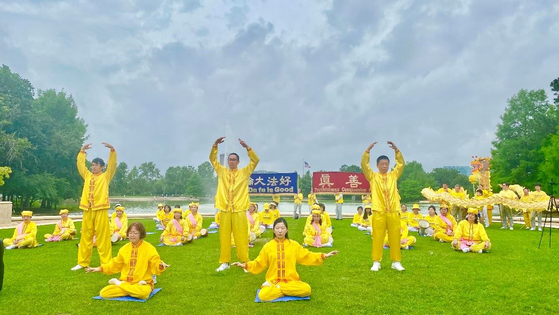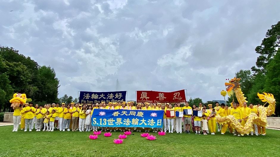 【明慧网二零二三年五月十四日】二零二三年五月十三日,是法轮大法弘传世界三十一周年,也是法轮功创始人李洪志先生七十二岁华诞。来自休斯顿的部分法轮功学员在这一天聚集在市中心的赫曼公园(Hermann Park),迎接这个普天同庆的节日,同时与民众分享修炼真、善、忍的美好与喜悦。