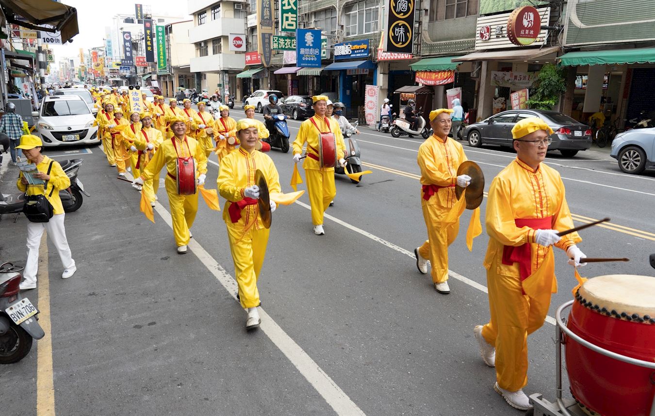 下午三点,绵长的游行队伍由天国乐团前导出发,鼓乐齐鸣,气势磅礴。仙女队、横幅队、旗队、炼功队、腰鼓队,沿途吸引很多路人驻足观看。他们对法轮功学员所展现的坚忍与善良纷纷表示高度赞许,很多店家老板都对法轮功学员伸出大拇指比“赞”!