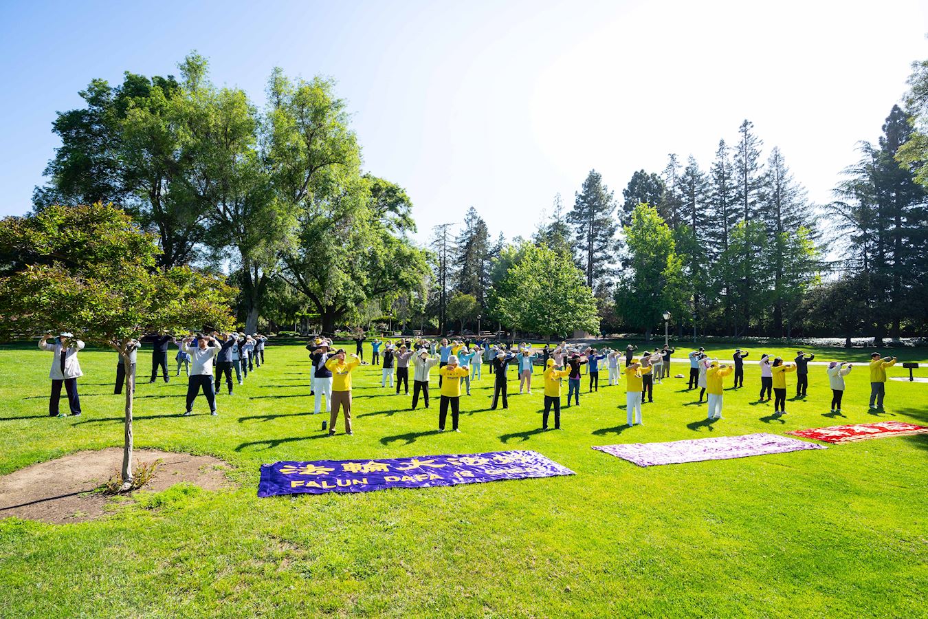 ![]() 图4~5:二零二三年五月十三日,法轮功学员在旧金山南湾桑尼维尔市奥德佳公园(Ortega Park)集体炼功。 |