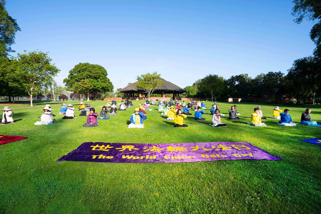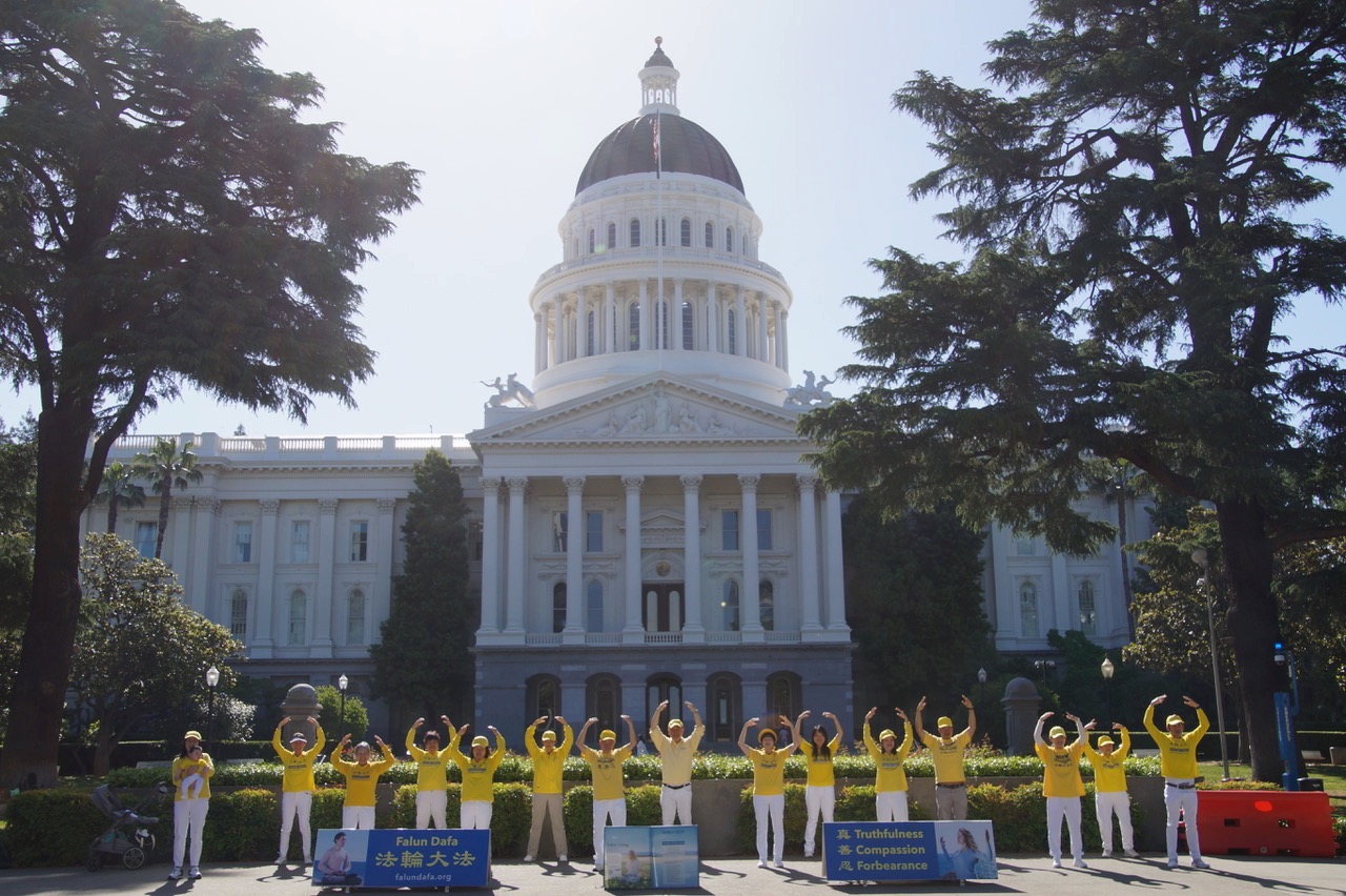 ![]() 图22:二零二三年五月十三日,加州首府沙加缅度的大法弟子在州府大楼前,集体炼功,庆祝世界法轮大法日。 |