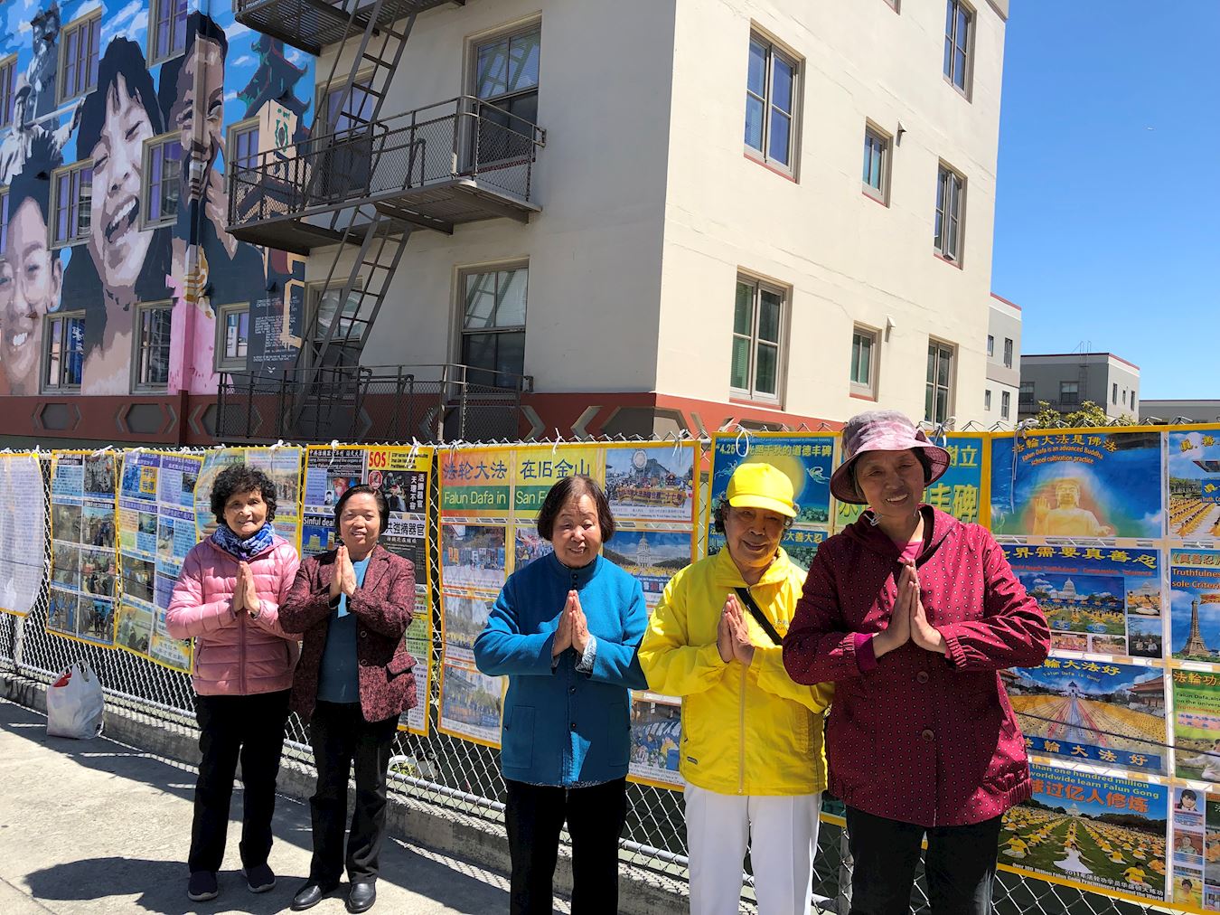 旧金山游客要读《转法轮》 双手合十祝李洪志师父生日快乐