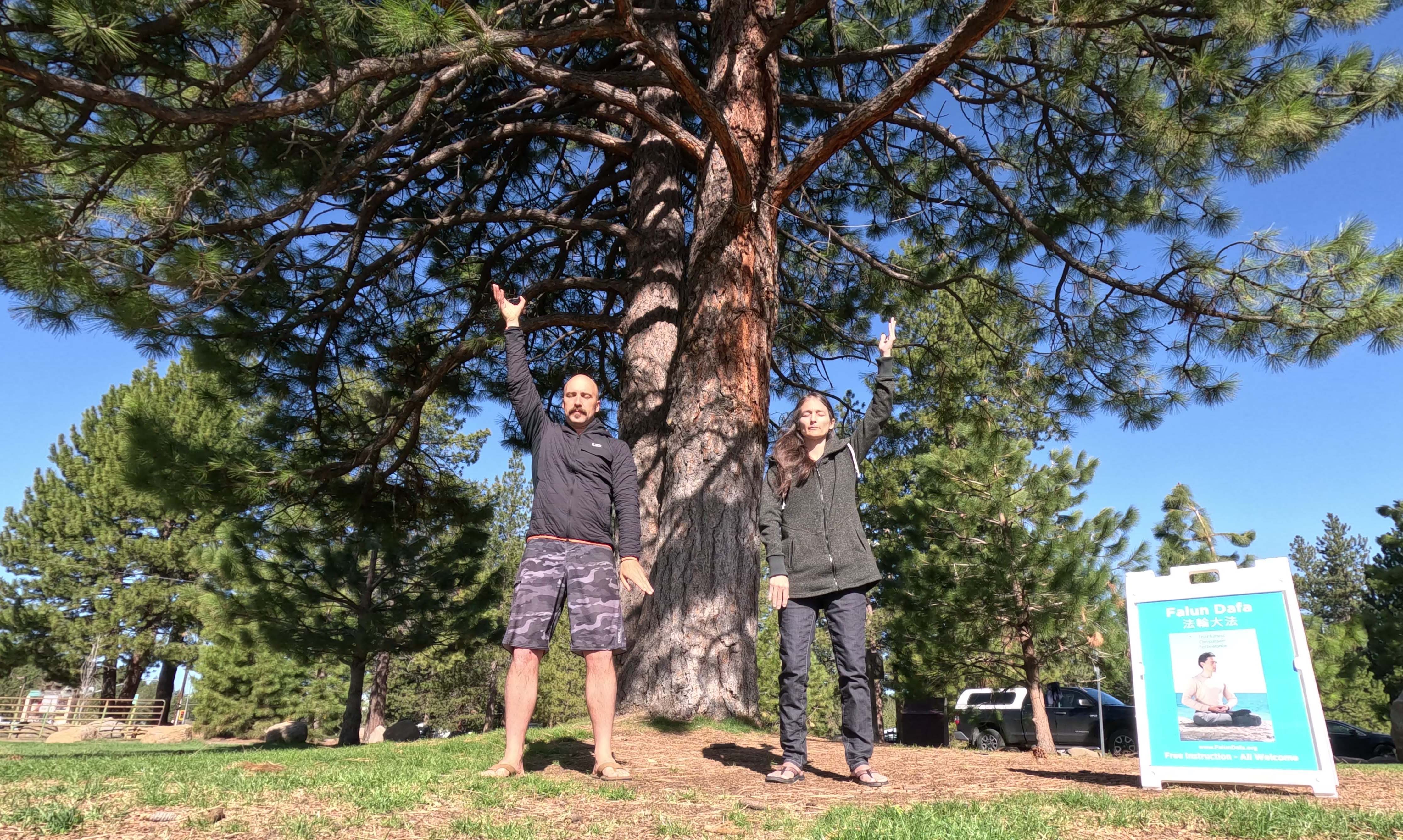 ![]() 图21:二零二三年五月十三日,加州特拉基(Truckee)的西人弟子在公园炼功,庆祝世界法轮大法日。 |