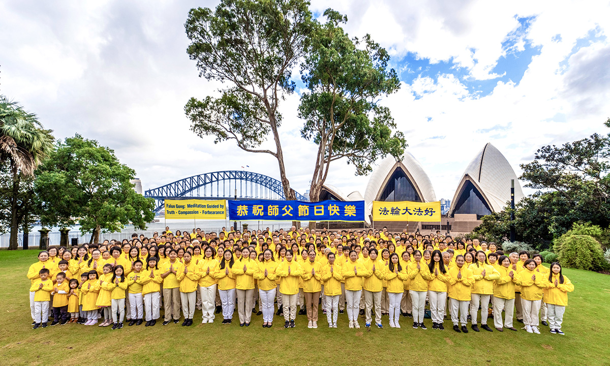 ![]() 图1:悉尼法轮功学员恭祝慈悲伟大的师尊生日快乐 |