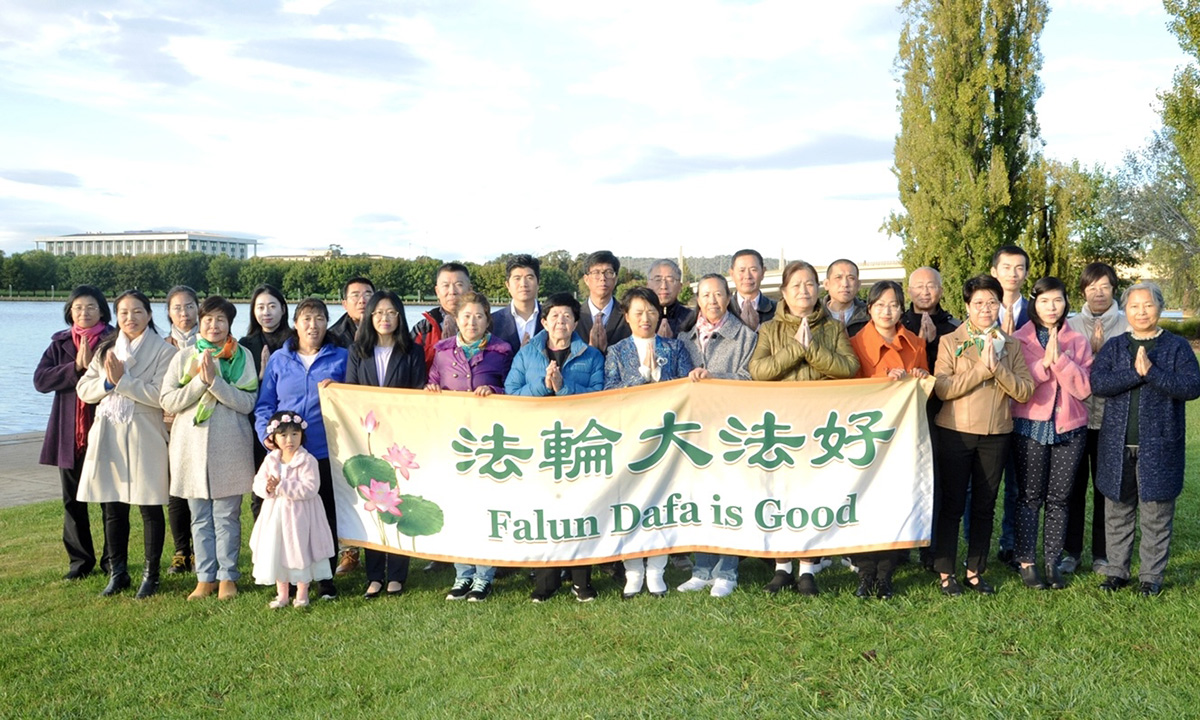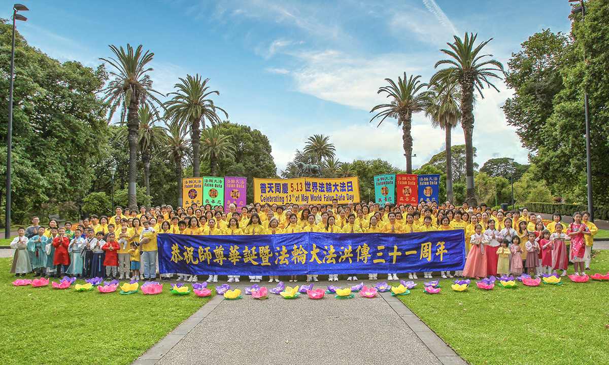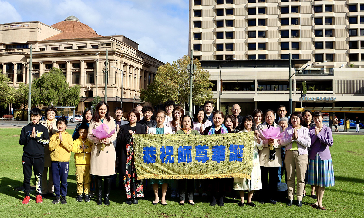 ![]() 图7:堪培拉法轮功学员恭祝慈悲伟大的师尊生日快乐 |